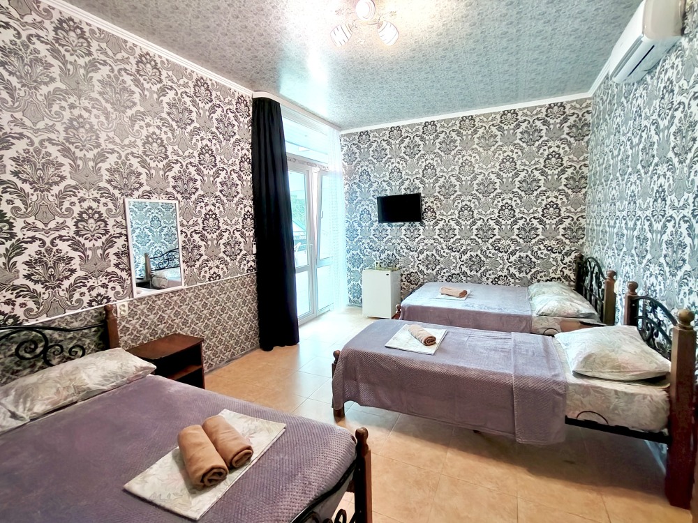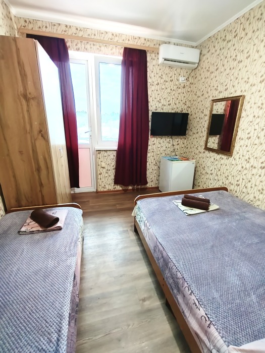 Для размещения предлагаются 2,3,4,5-местные номера категории «Стандарт» и «Эконом». В каждом номере необходимая мебель, кондиционер, телевизор, холодильник, балкон, полотенца.