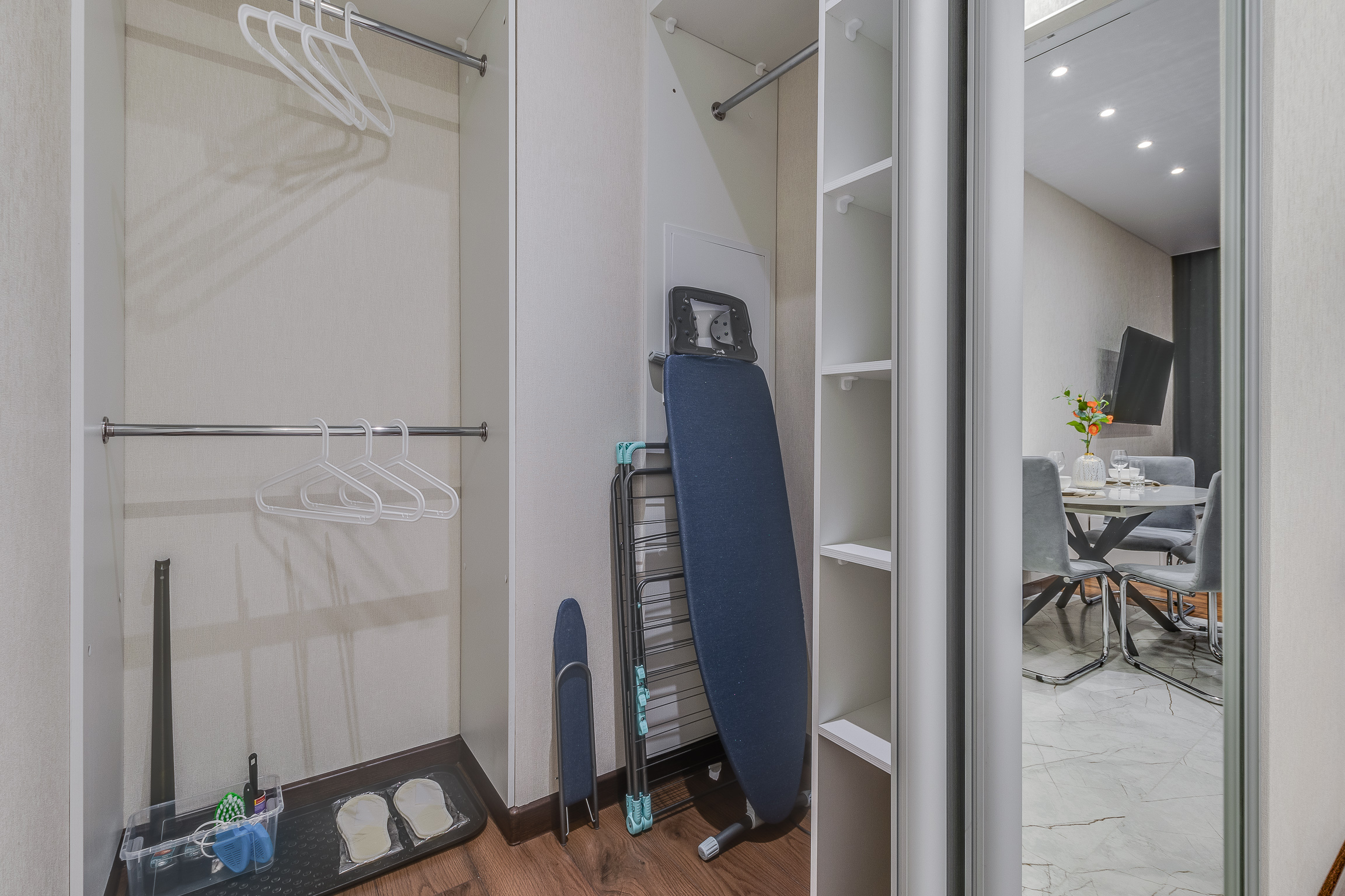 - утюг, гладильная доска, сушилка для белья, рожок для обуви, сушилка для обуви и другие необходимые мелочи.