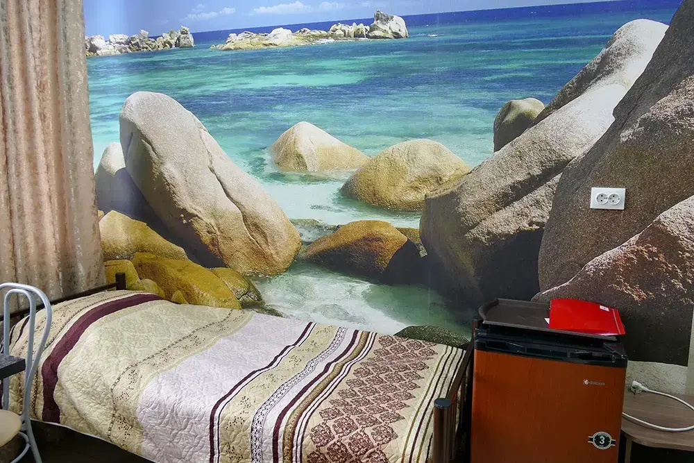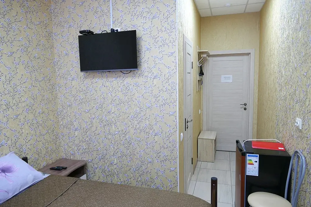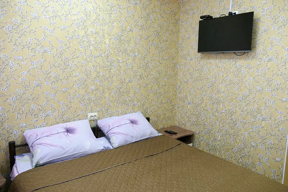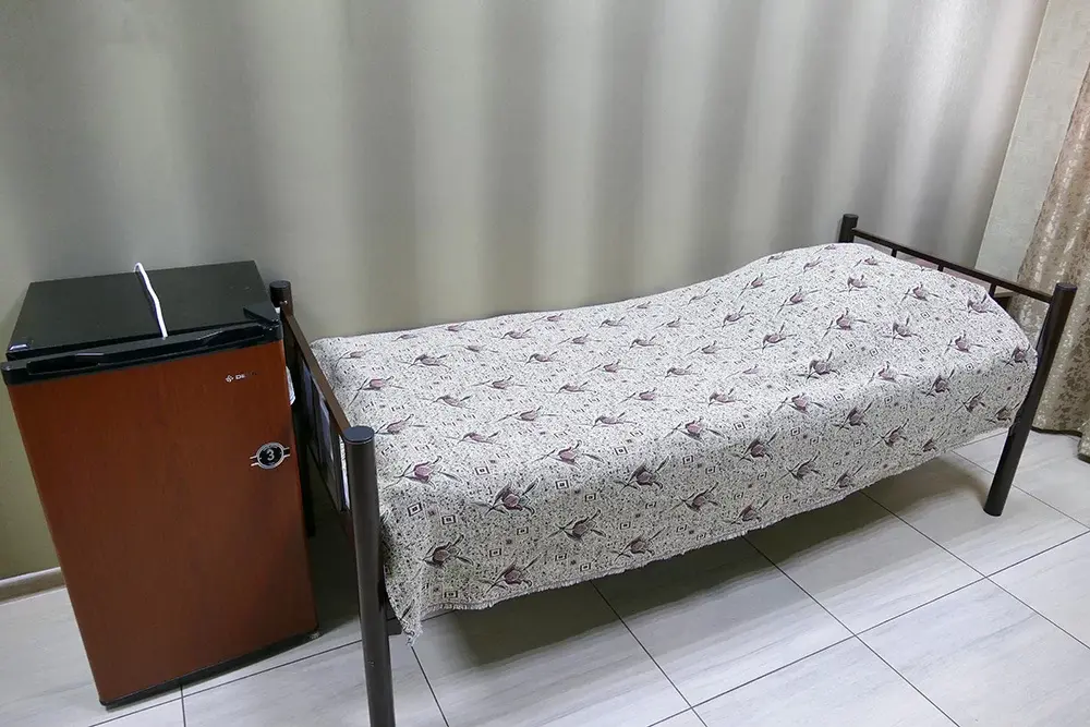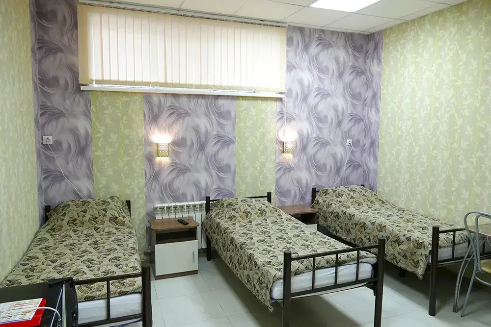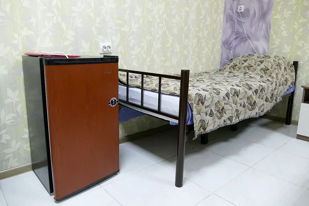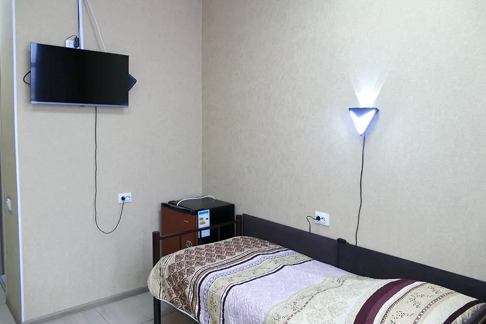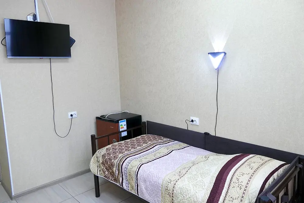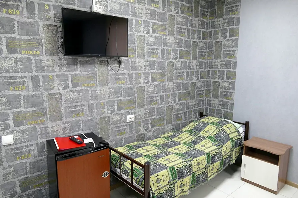 В номере: кровать, тумбочки прикроватные, столы, стулья, вешалки, холодильник, телевизор, подушки, одеяла, постельное бельё, полотенца. Проживание детей до 3-х лет без предоставления места – бесплатно.