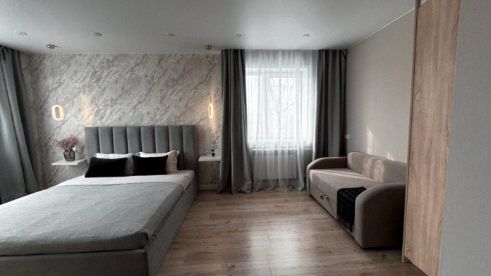 - кровать с матрасом Аскона 180*200 и раскладывающийся мини-диван (спальное место 90*190);