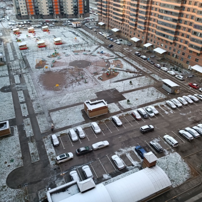 Уютный двор с детской и спортивной площадкой (горки, лазалки, турники, футбольное поле, тренажёры).