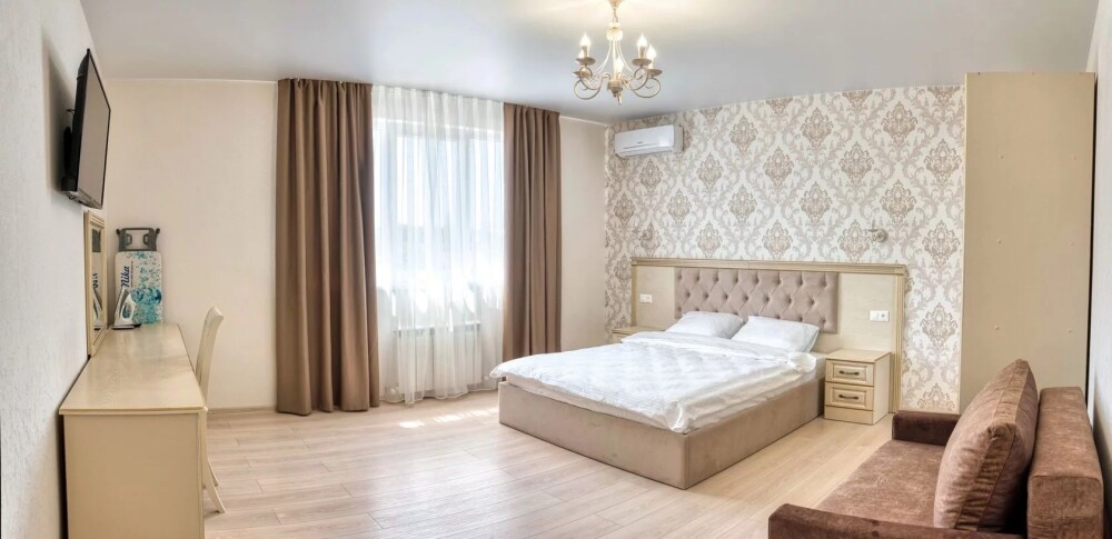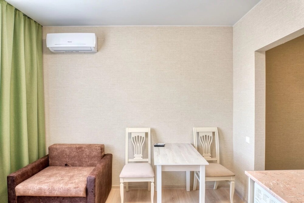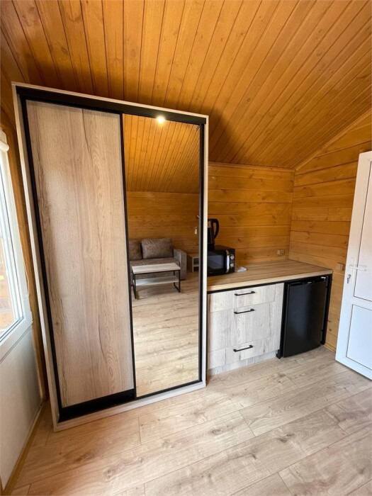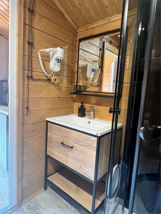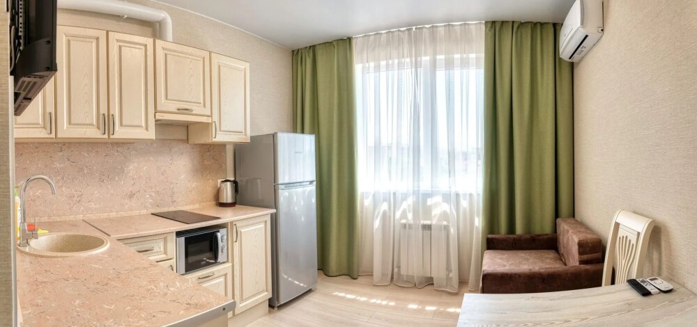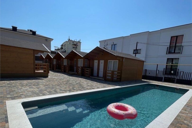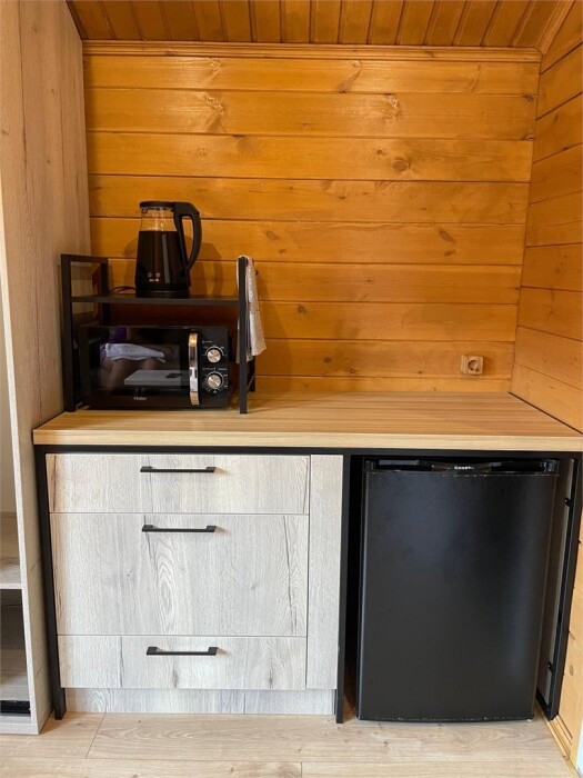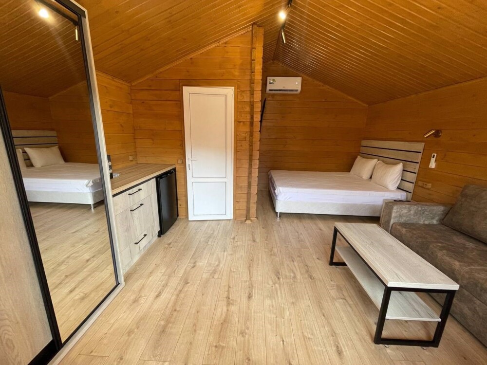 Из вариантов размещения, гостям предлагаются, Апартаменты расположенные в 3-х этажном здании, которые оборудованы кухней с обеденной зоной и стиральной машиной. И отдельно стоящие 1-комнатные эко-домики. Все они оснащены телевизором, Wi-FI, кондиционером, холодильником, микроволновой печью, чайником.
