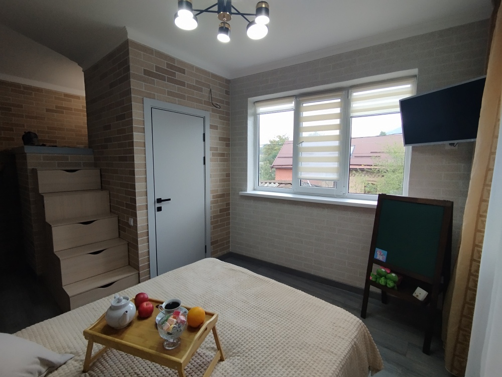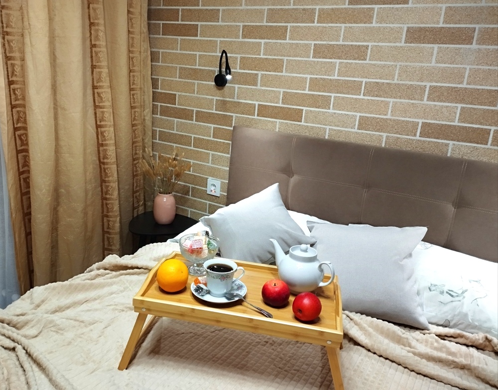 - Широкую двуспальную кровать с ортопедическим матрасом и чистым хлопковым постельным бельем для крепкого сна.