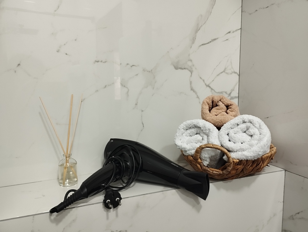- Гигиенические принадлежности (зубную пасту, тапочки, гель для душа, шампунь, кондиционер, свежие полотенца).