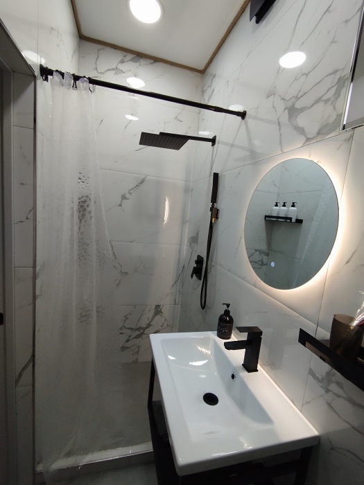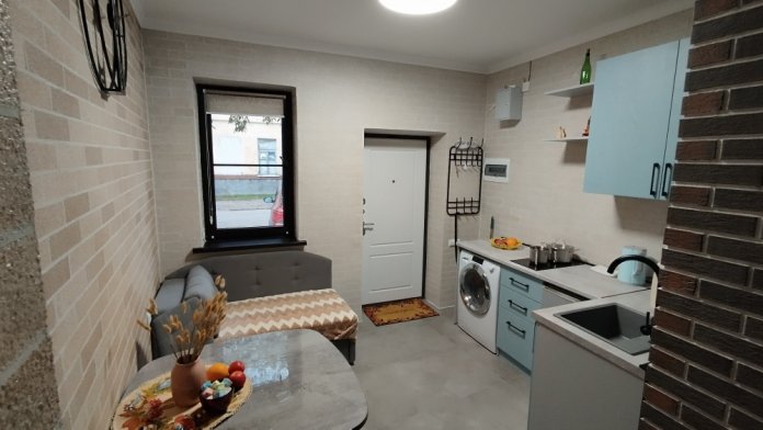 - Всю необходимую бытовую технику (стирально-сушильную машину, холодильник, фен, телевизор, утюг, микроволновую печь, чайник, кофеварку).