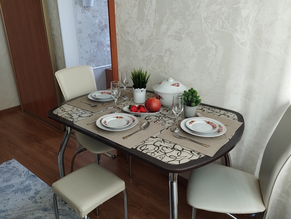 Квартира с 2-мя спальнями и гостинной-столовой. В квартире имеется комфортная кровать с ортопедическим матрасом, 2 дивана-кровати, оборудованная кухня и обеденная зона. Удобное размещение до 6-ти человек. 3 этаж. Мы также предоставляем- хлопковое постельное бельё и полотенца для всех гостей гигиенические наборы и одноразовые тапочки, жидкое мыло, гель для душа, шампунь, стиральную машину и средства для стирки, посудомоечную машину и средства для мытья посуды, телевизор, утюг и гладильную доску, 2 сплит-системы для поддержания комфортной температуры, пылесос, моющие средства, губки, фен, чайник и чай, микроволновую печь, вместительный холодильник, сервировочную посуду и посуду для приготовления, бокалы и штопор, шустрый Wi-Fi и застекленный балкон с местом для отдыха и сушилкой для белья.