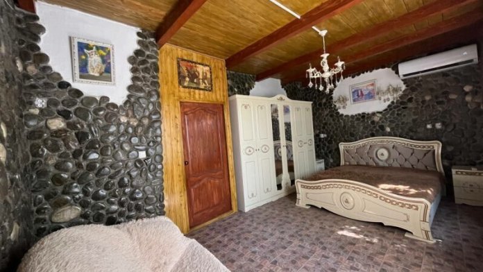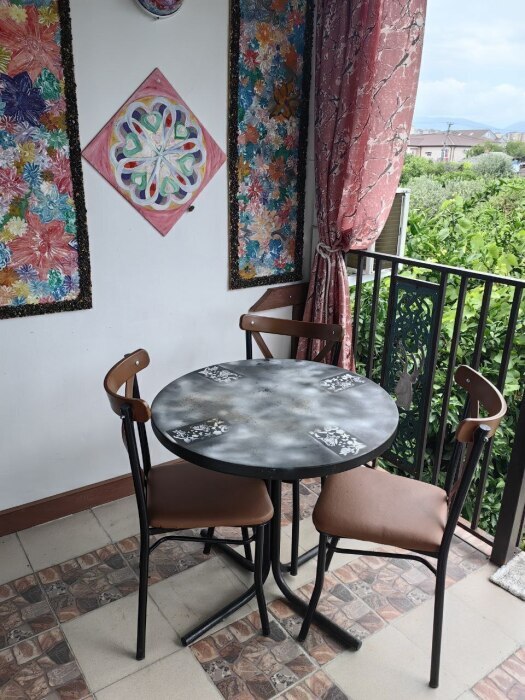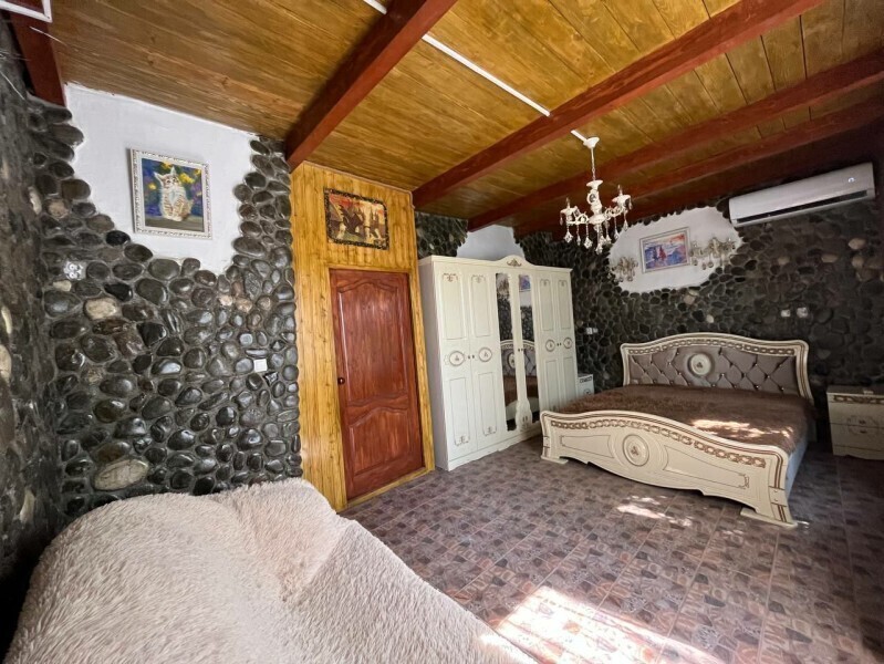 Находится в гостевом доме с большой территорией двора. Сезонные фрукты можно есть прямо с дерева. Предусмотрены мангальная зона, беседки для отдыха, парковочные места.