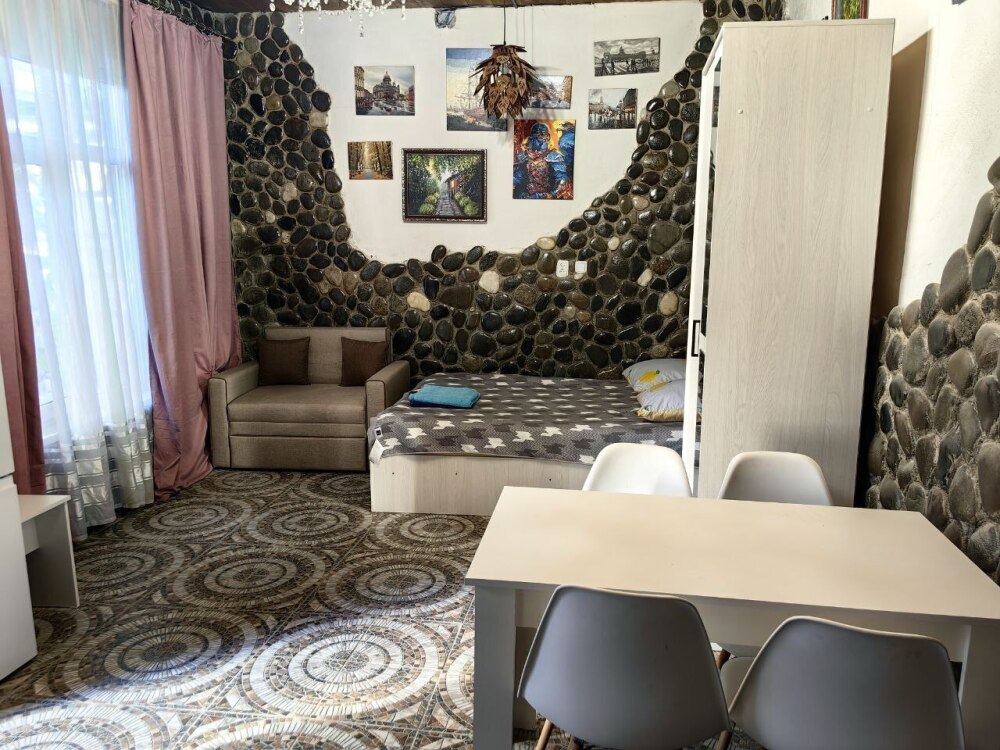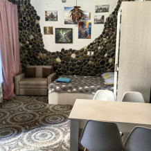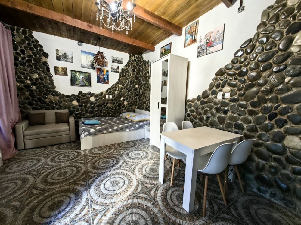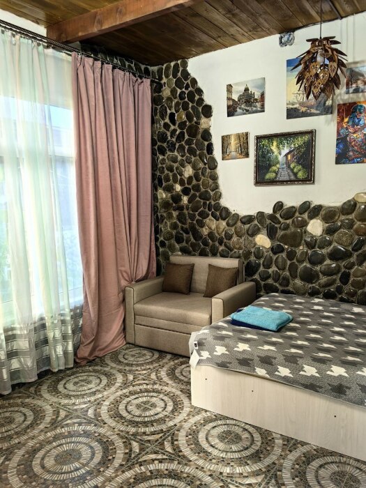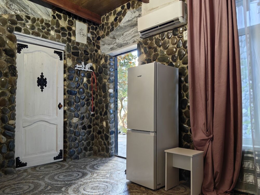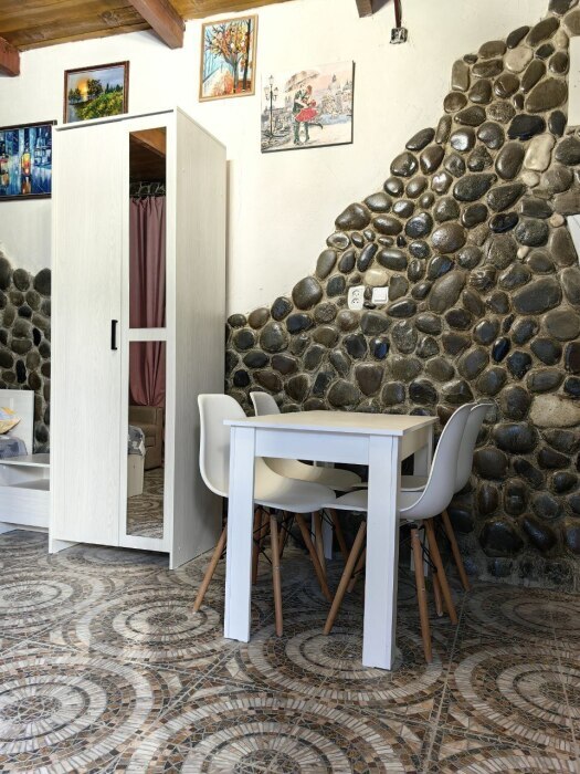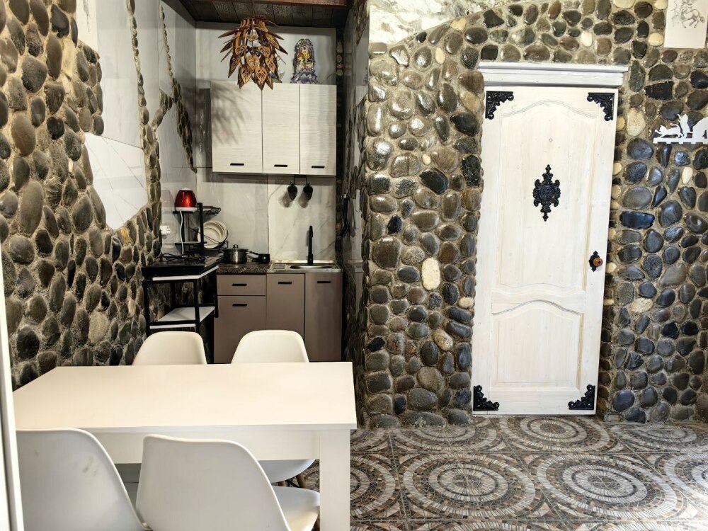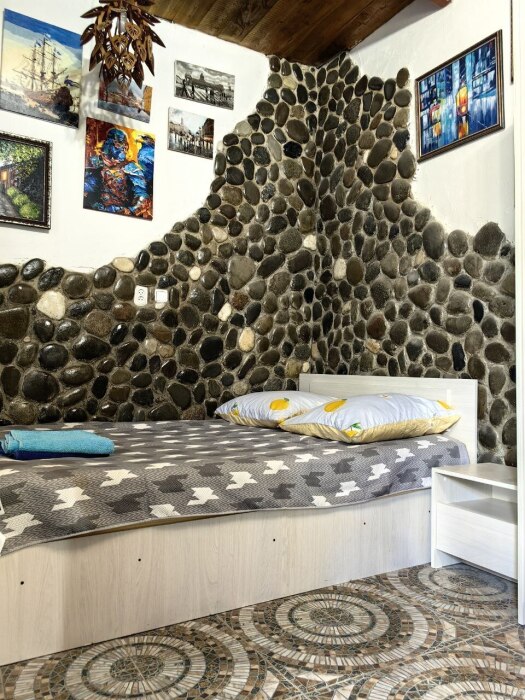Стены украшены уникальным морским камнем, собранным на берегу моря. Камень, пронизанный морской энергией, создает особую атмосферу, благотворно влияет на ваше состояние и окружающее пространство.