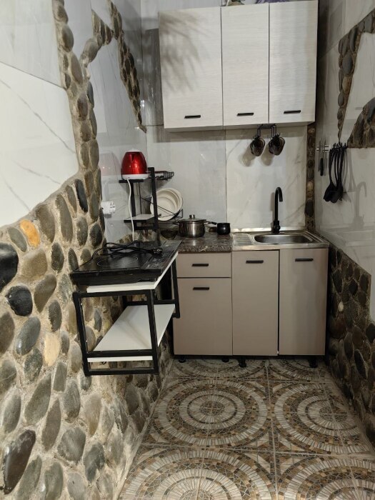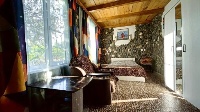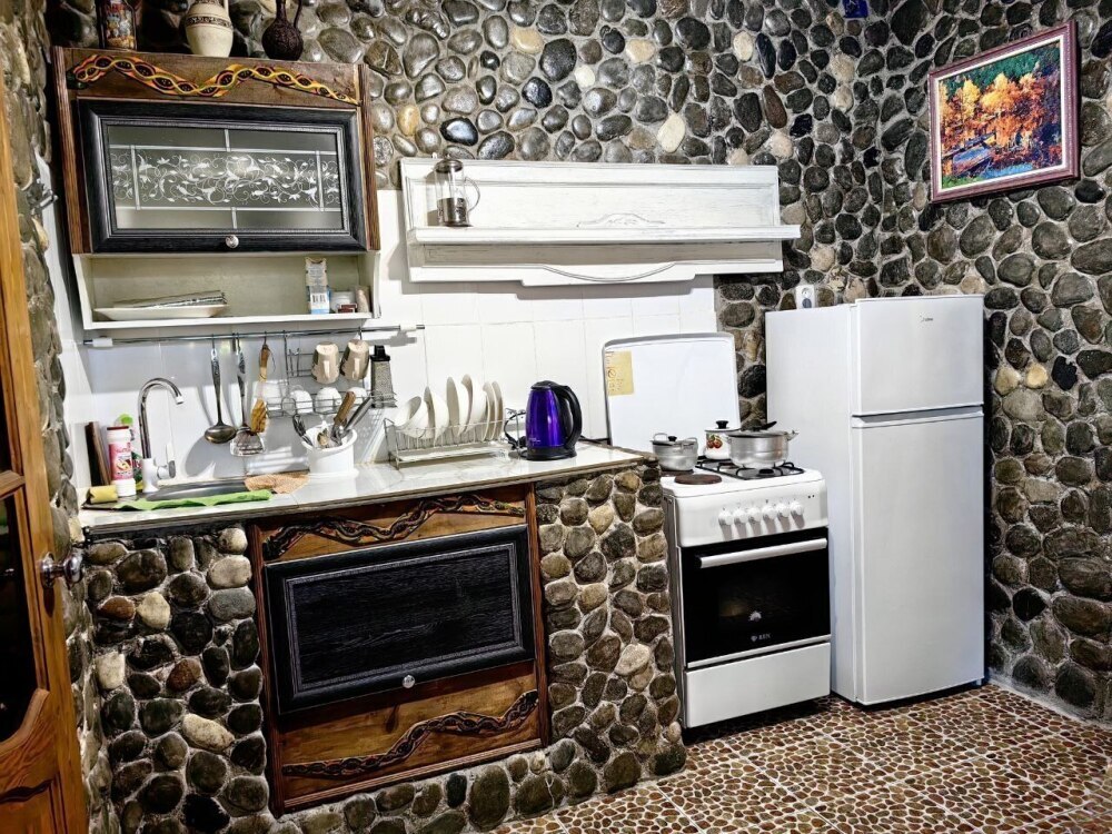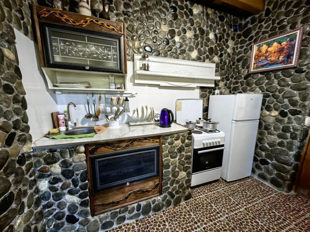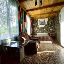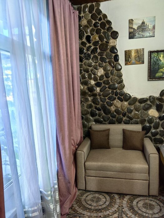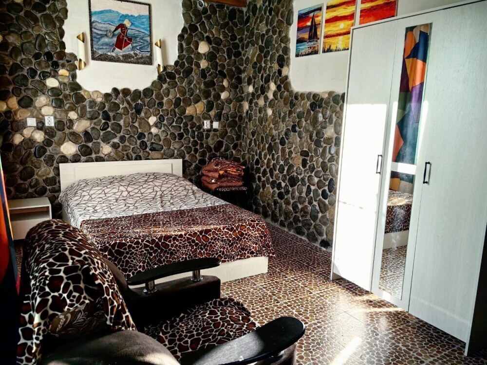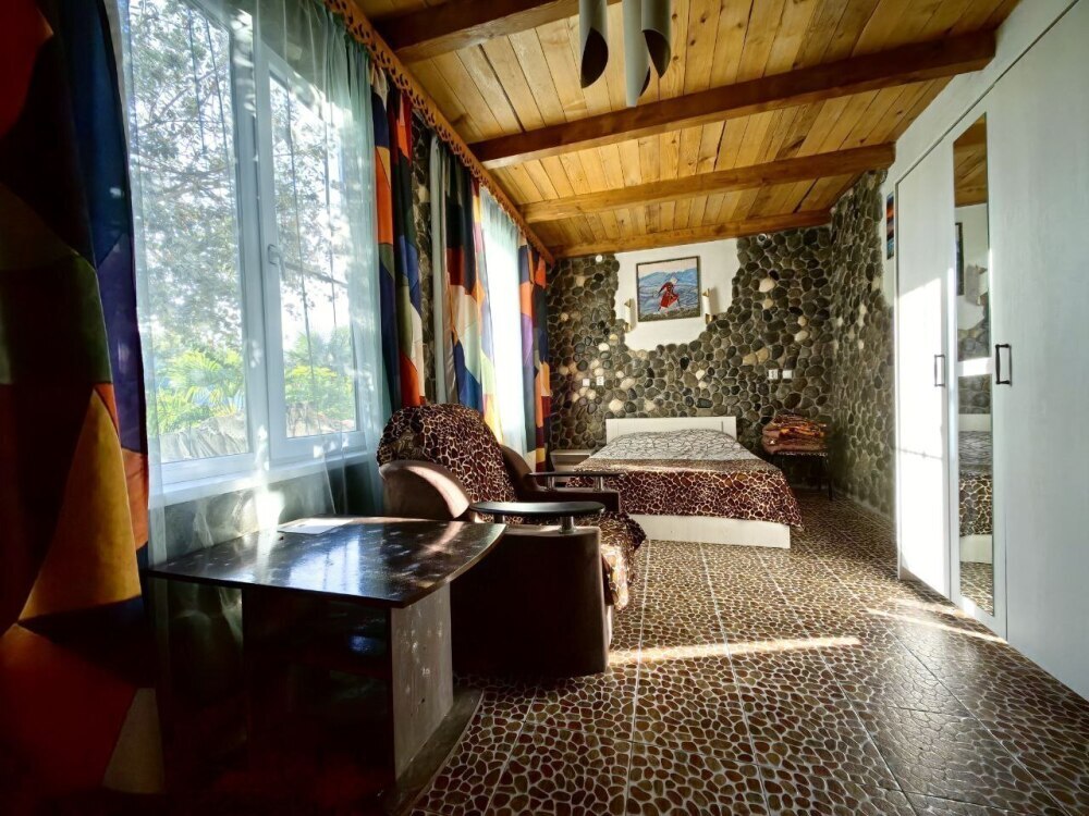 Стены украшены уникальным морским камнем, собранным на берегу моря. Камень, пронизанный морской энергией, создает особую атмосферу, благотворно влияет на ваше состояние и окружающее пространство.