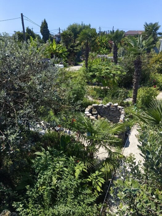 Место для спокойного отдыха, большая огороженная территория с зелёным, цветущим садом с экзотическими растениями. Предусмотрена мангальная зона, беседки для отдыха, парковочные места. Сезонные фрукты можно есть прямо с дерева.