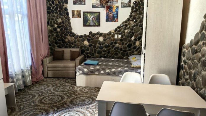Предлагаем уютные студии и 2-комнатные номера на 4−5 спальных мест, каждый с собственной кухней, бытовой техникой, кондиционером и Wi-Fi.