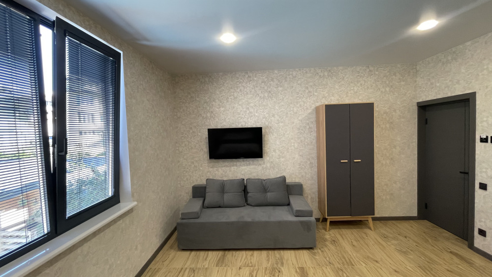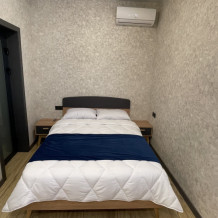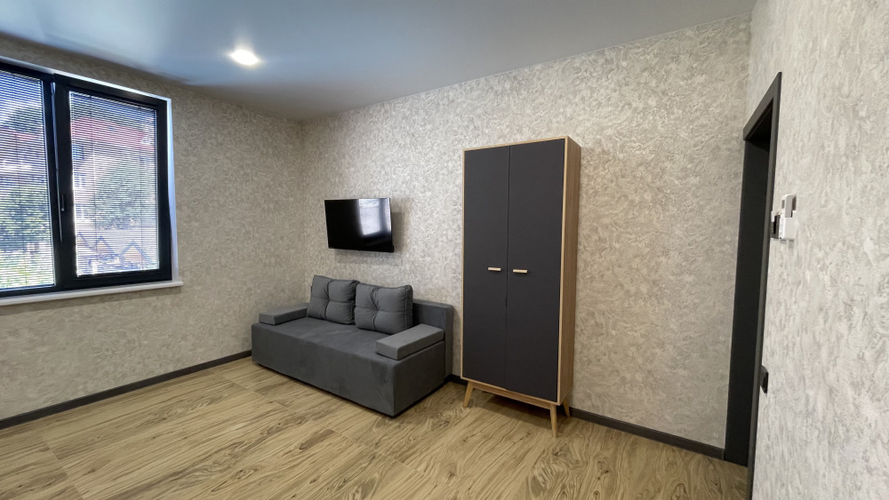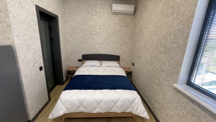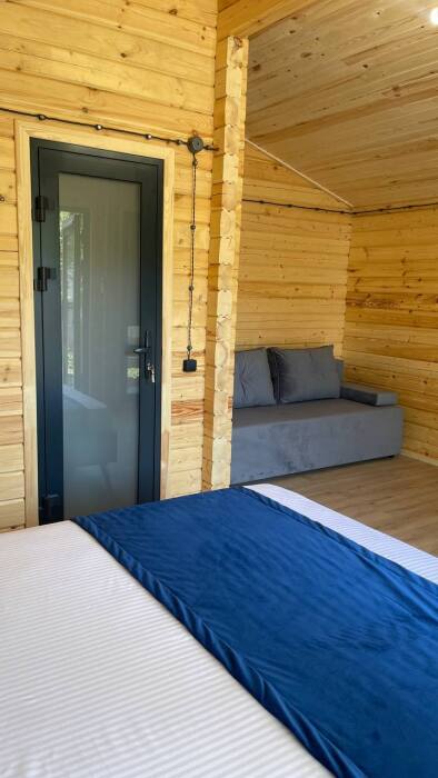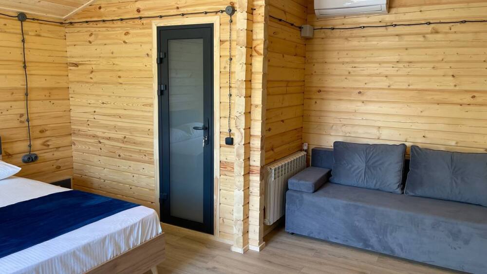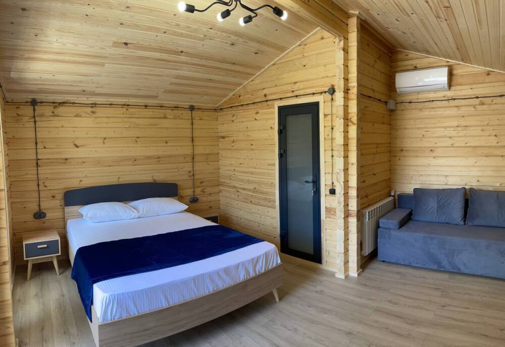 В номере: санузел (душ, туалет, умывальник), телевизор, холодильник, кондиционер, двуспальная кровать, двуспальный диван, шкаф для одежды, вешалка, прикроватные тумбочки, терраса (на улице).