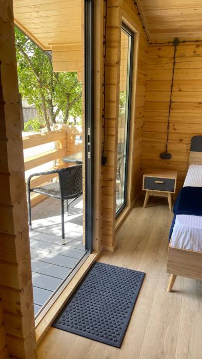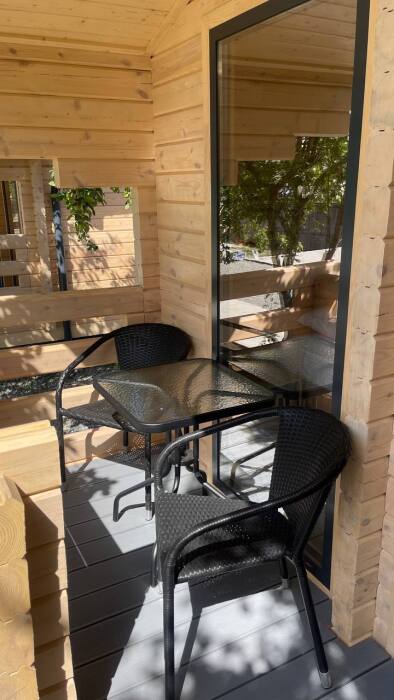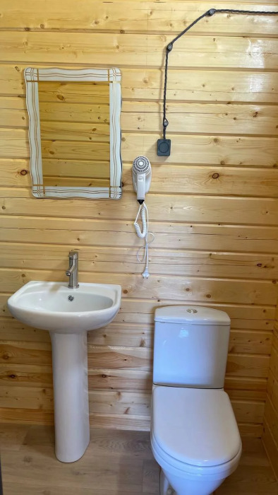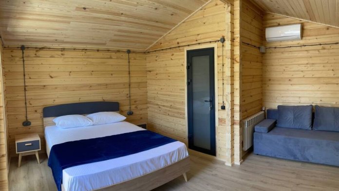 На территории современные деревянные дома со всеми удобствами и трехэтажный корпус с номерами.