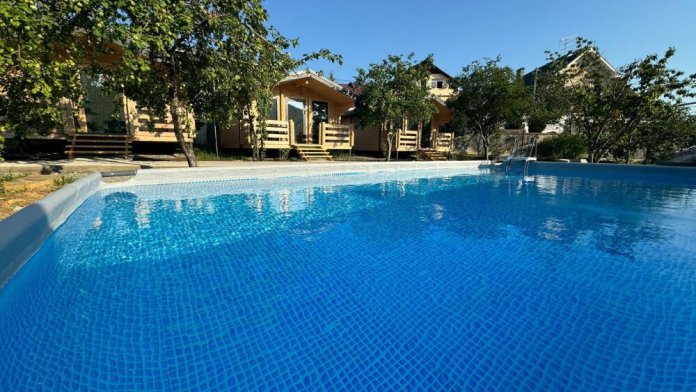 Территория окружена живописным фруктовым садом. Имеется бассейн, мангальная зона и летняя кухня. Гости могут оставить машину на парковке.