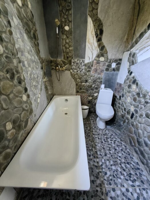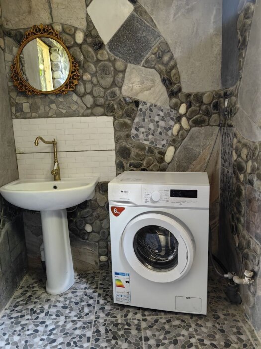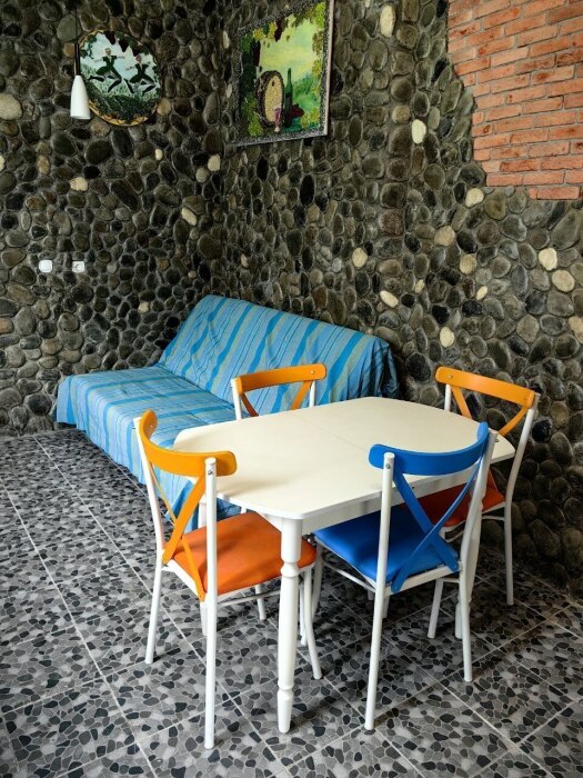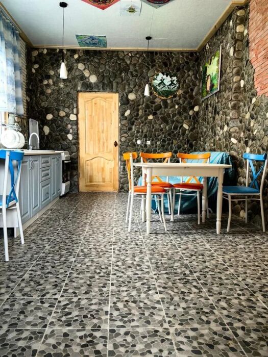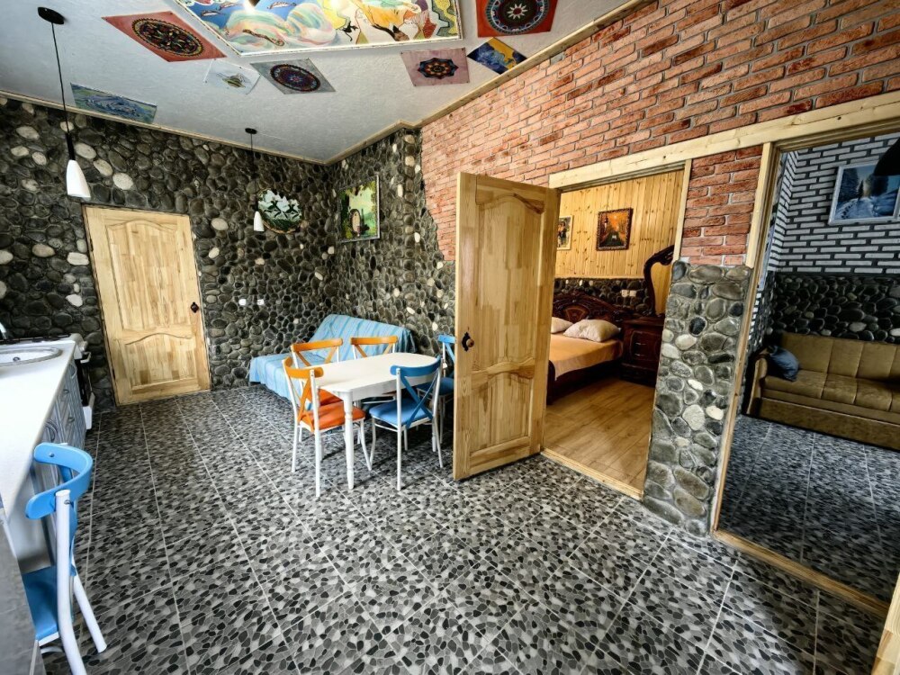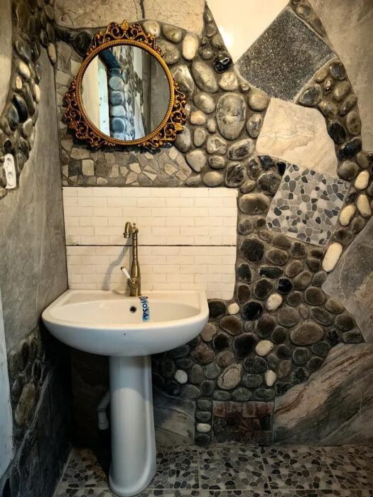 Стены украшены уникальным морским камнем, собранным на берегу моря. Этот камень, пронизанный морской энергией, создает особую атмосферу, благотворно влияет на ваше состояние и окружающее пространство.