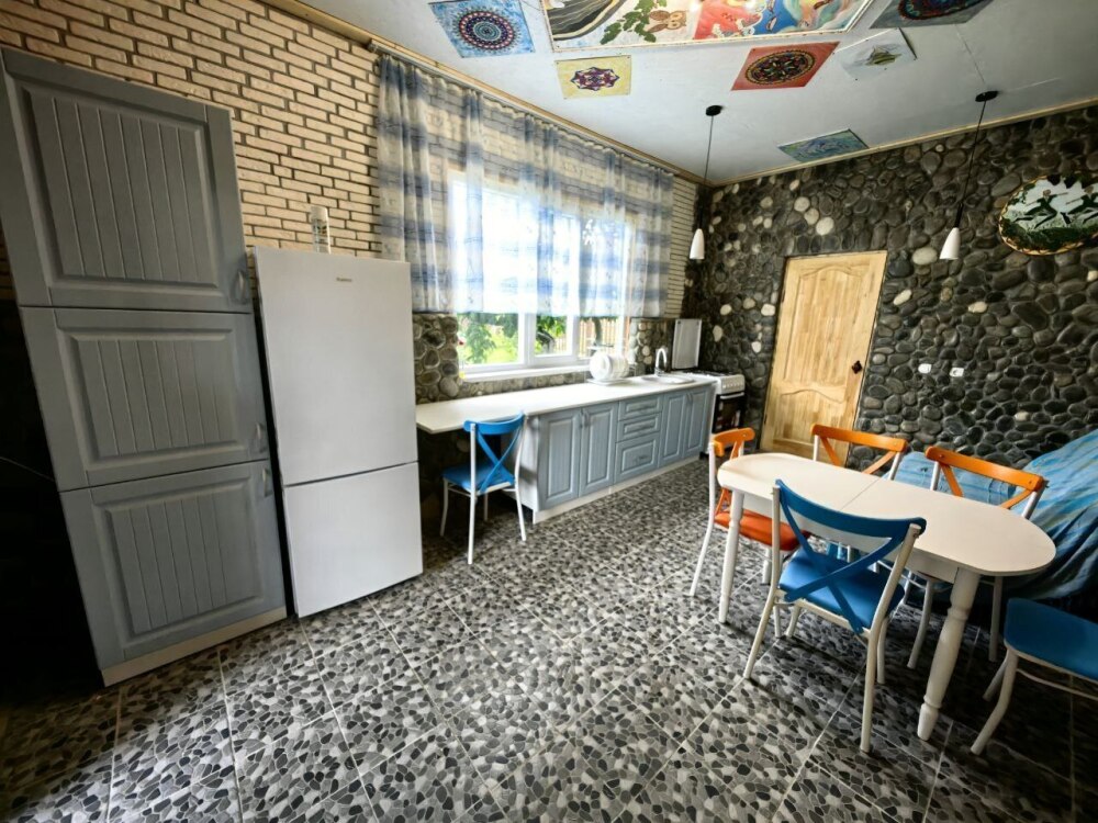 В доме находится 2 изолированные спальни и кухня, совмещённая с гостиной. Дом рассчитан до 6 человек, возможно организовать дополнительное спальное место. На кухне есть посуда, холодильник, плита, также для вашего удобства предусмотрена стиральная машина и кондиционер. Подойдет для семейного отдыха и для большой компании.