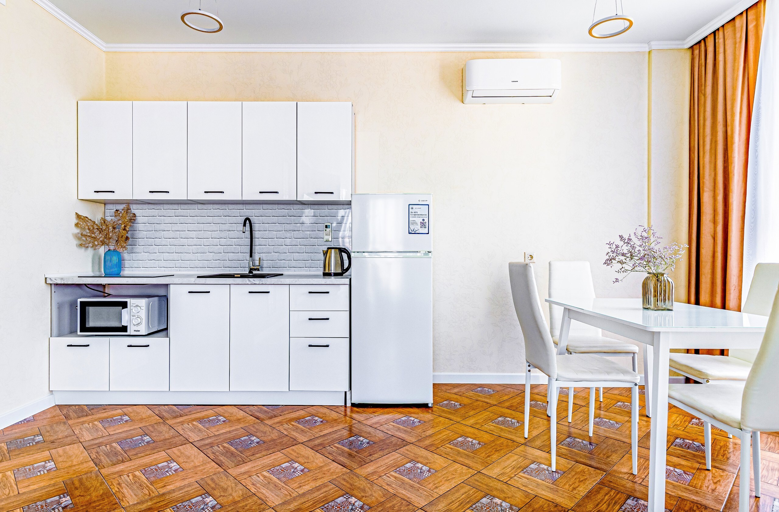- Вся необходимая бытовая техника (стиральная машина, холодильник, фен, плазменный телевизор со SMART TV, утюг, микроволновая печь, чайник);