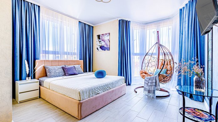 - Комфортабельная кровать 160х200 см с ортопедическим матрасом. Заправлена чистым постельным, 100% хлопковым бельем, кровать 140*200. Подвесное кресло-кокон;