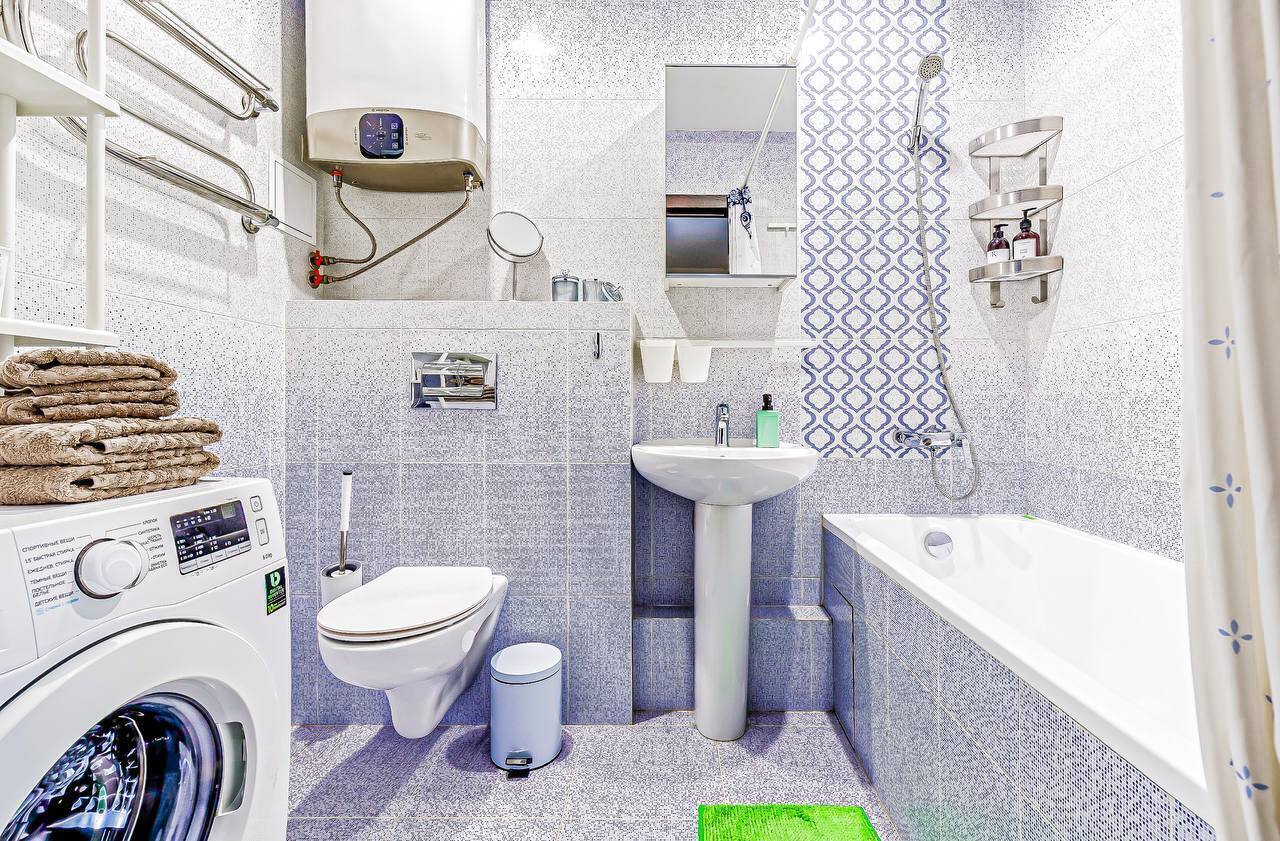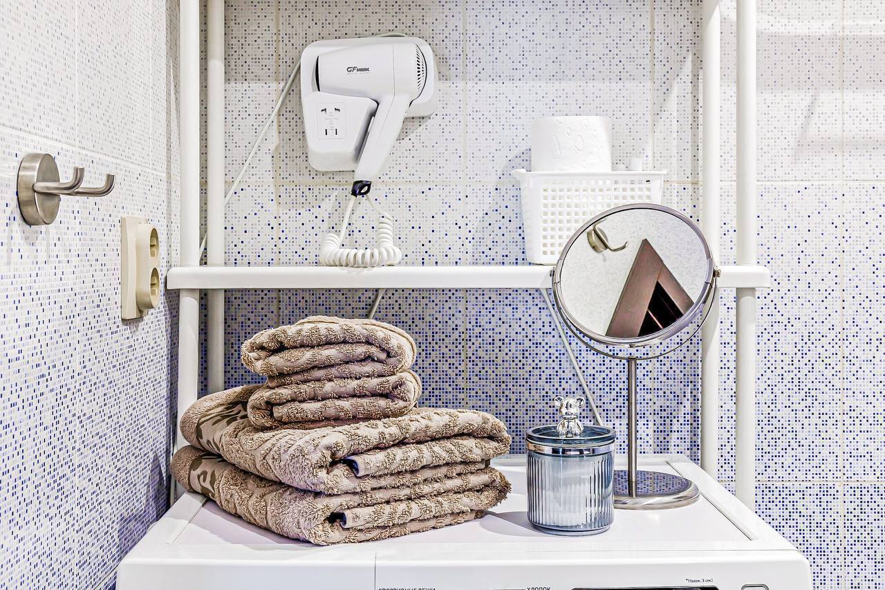 - Современный санузел с ванной, стиральной машиной, туалетными принадлежностями и феном, чтобы Вы всегда выглядели на высоте.
