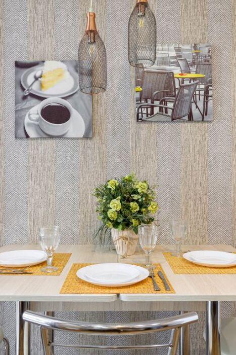- Набор посуды и столовых принадлежностей на 4 персоны. Чай, кофе, сахар, соль;