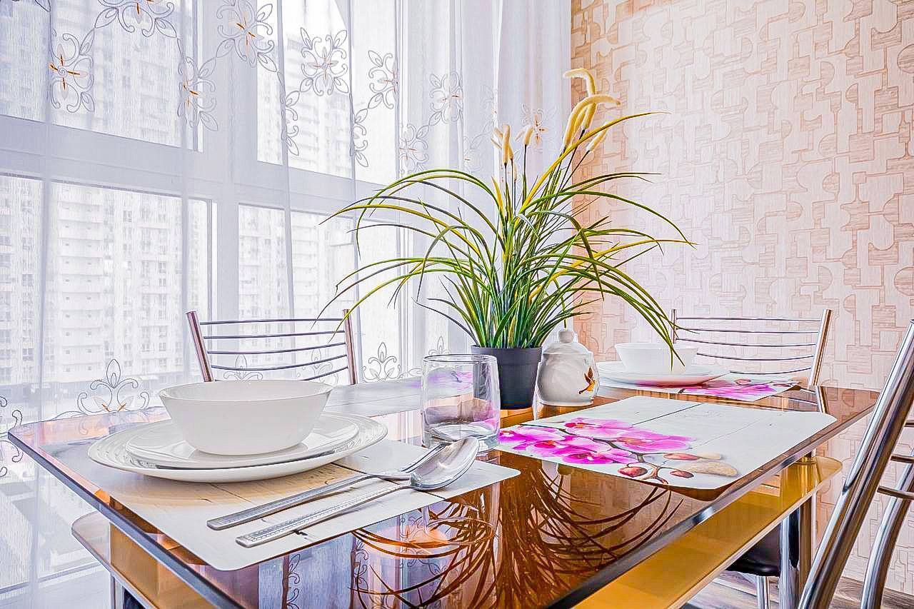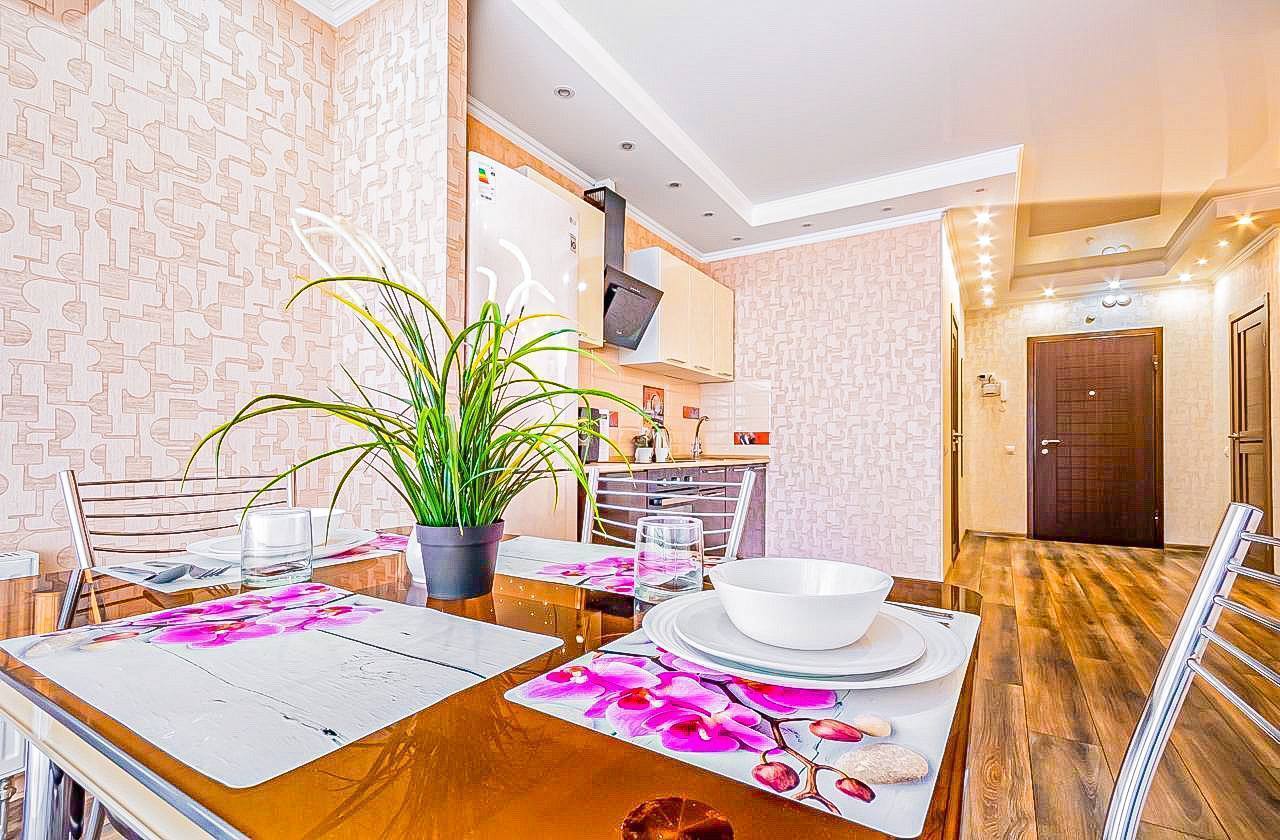 В квартире выполнен красивый, дорогой ремонт, удобная, качественная мебель и техника. В каждой комнате установлен телевизор. Кухонная зона оборудована всей необходимой мебелью и техникой, а также укомплектована посудными принадлежностями. Постельное белье, полотенца, средства личной гигиены, тапочки предоставляем.
