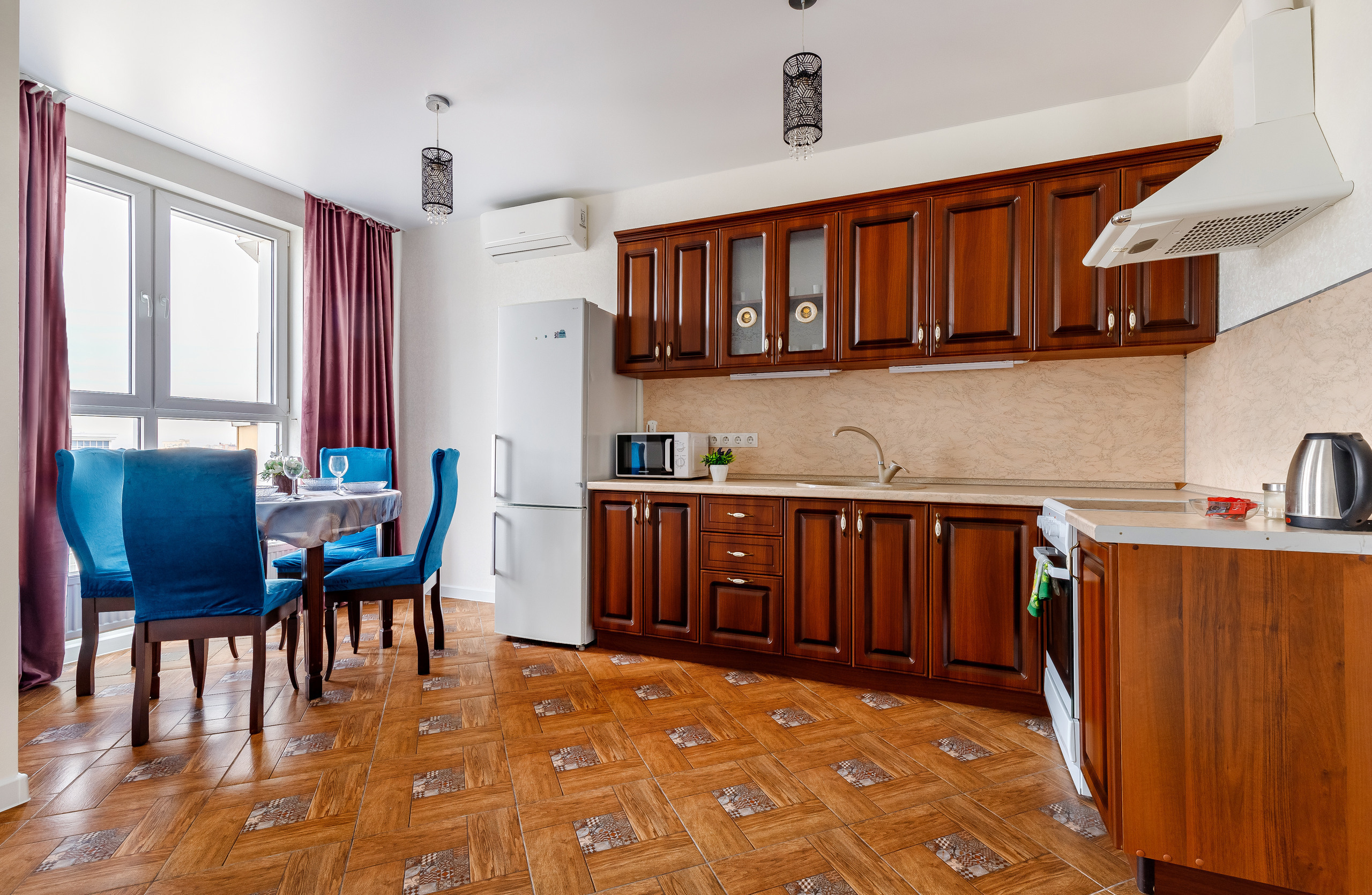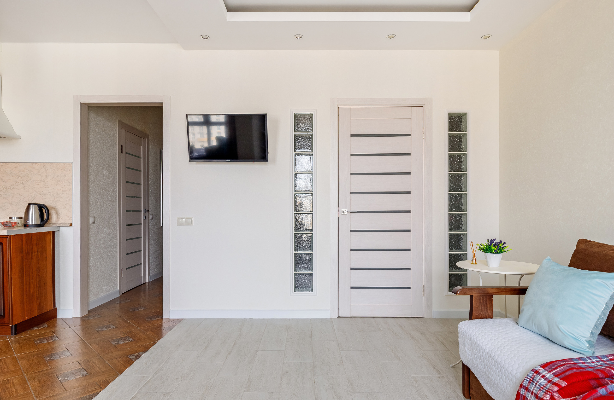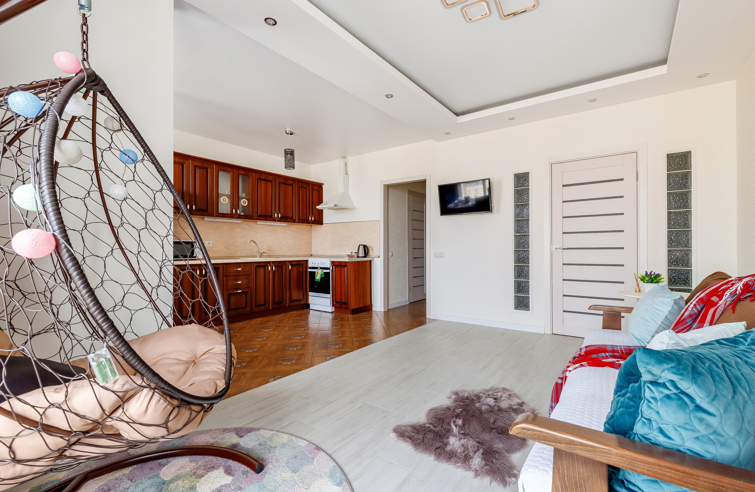 В квартире есть все для комфортного проживания 4 гостей: Двуспальная кровать, диван 2-местный, кресло-кокон, телевизор, шкаф, кухня со всей бытовой техникой, стол обеденный, стулья, беспроводной Wi-Fi, кабельное телевидение. Гостям предоставляется постельное белье, тапочки, средства личной гигиены.