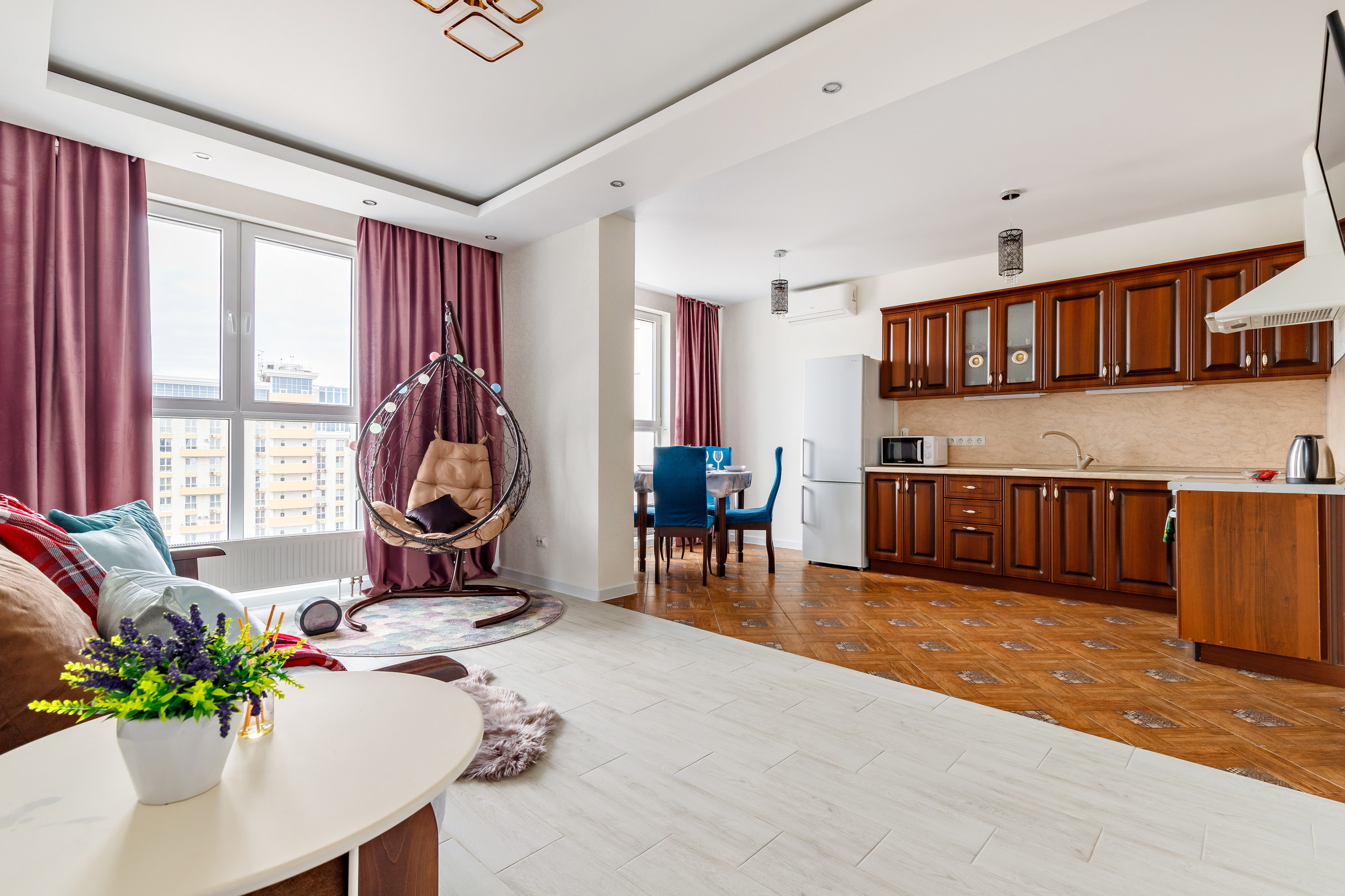 Отличная 2-комнатная квартира-студия с потрясающим видом на город с высоты 23 этажа. В квартире очень много света. Дом находится на улице Красная, на которой расположено много достопримечательностей Краснодара. В доме на 1 этаже расположен ТЦ «Центр города», закрытая парковка, детская площадка, футбольное поле, тренажеры на открытом воздухе, фонтан. В шаговой доступности любой вид транспорта в любую точку города, ТЦ «Галерея».