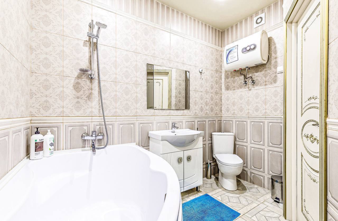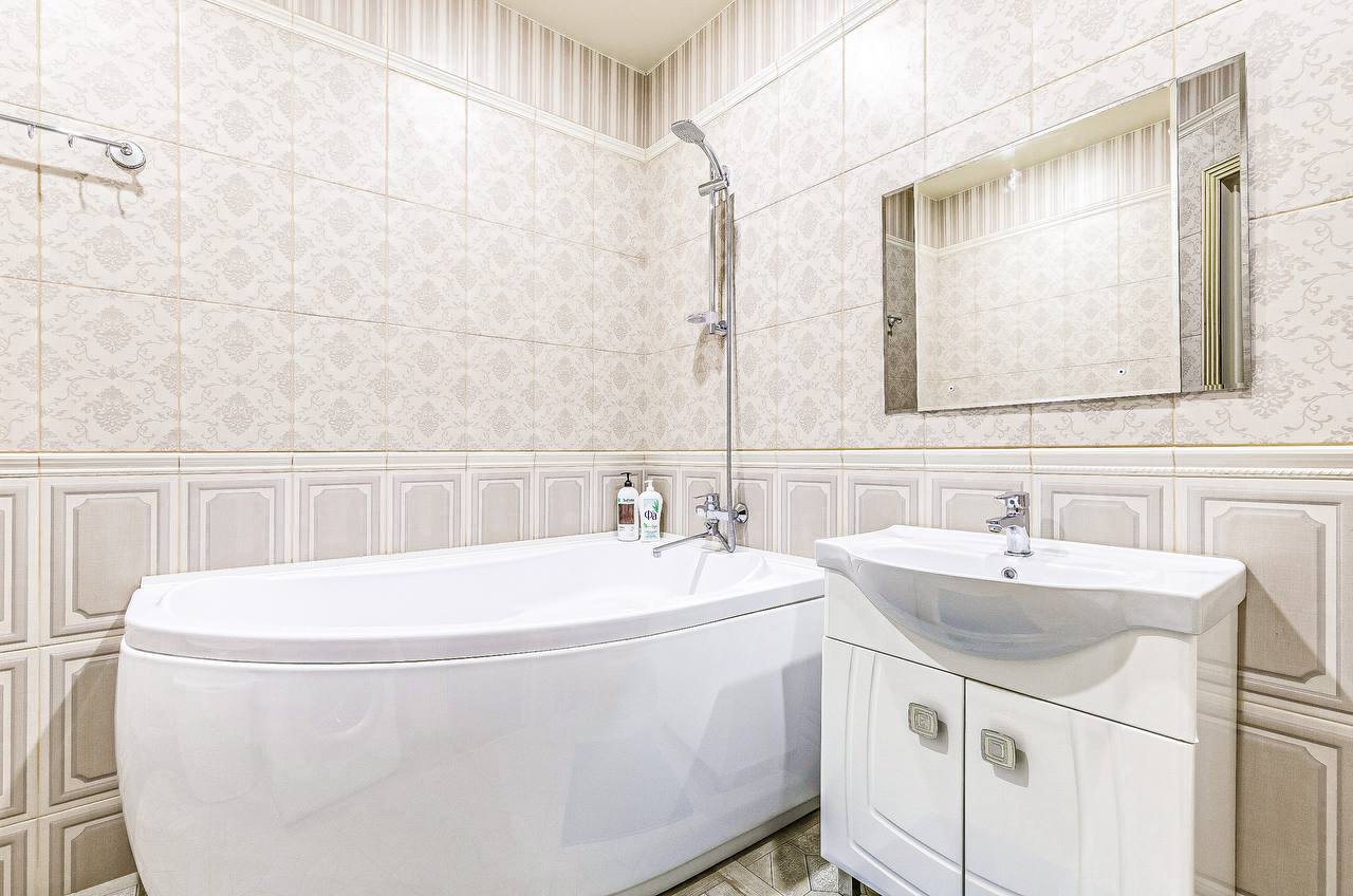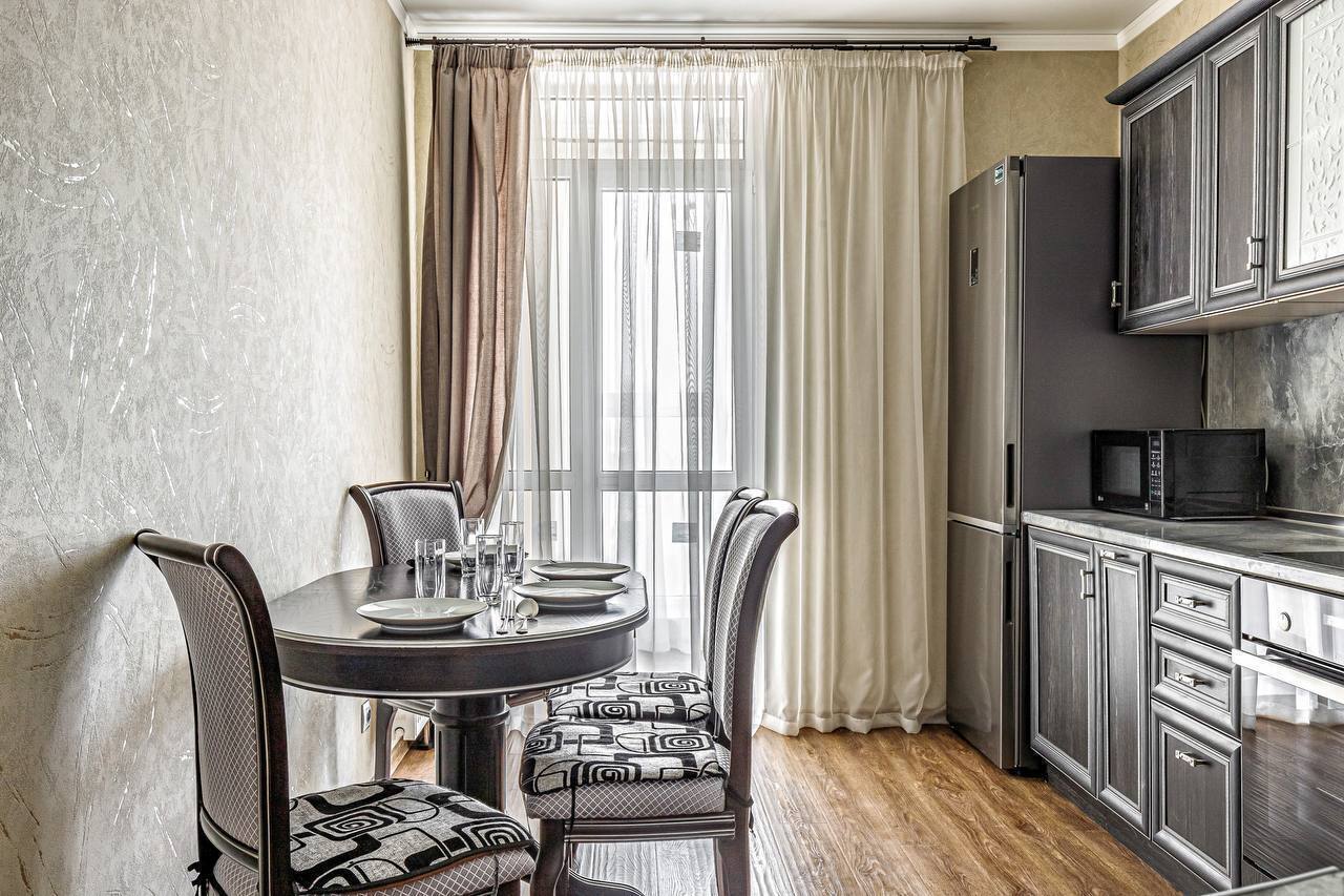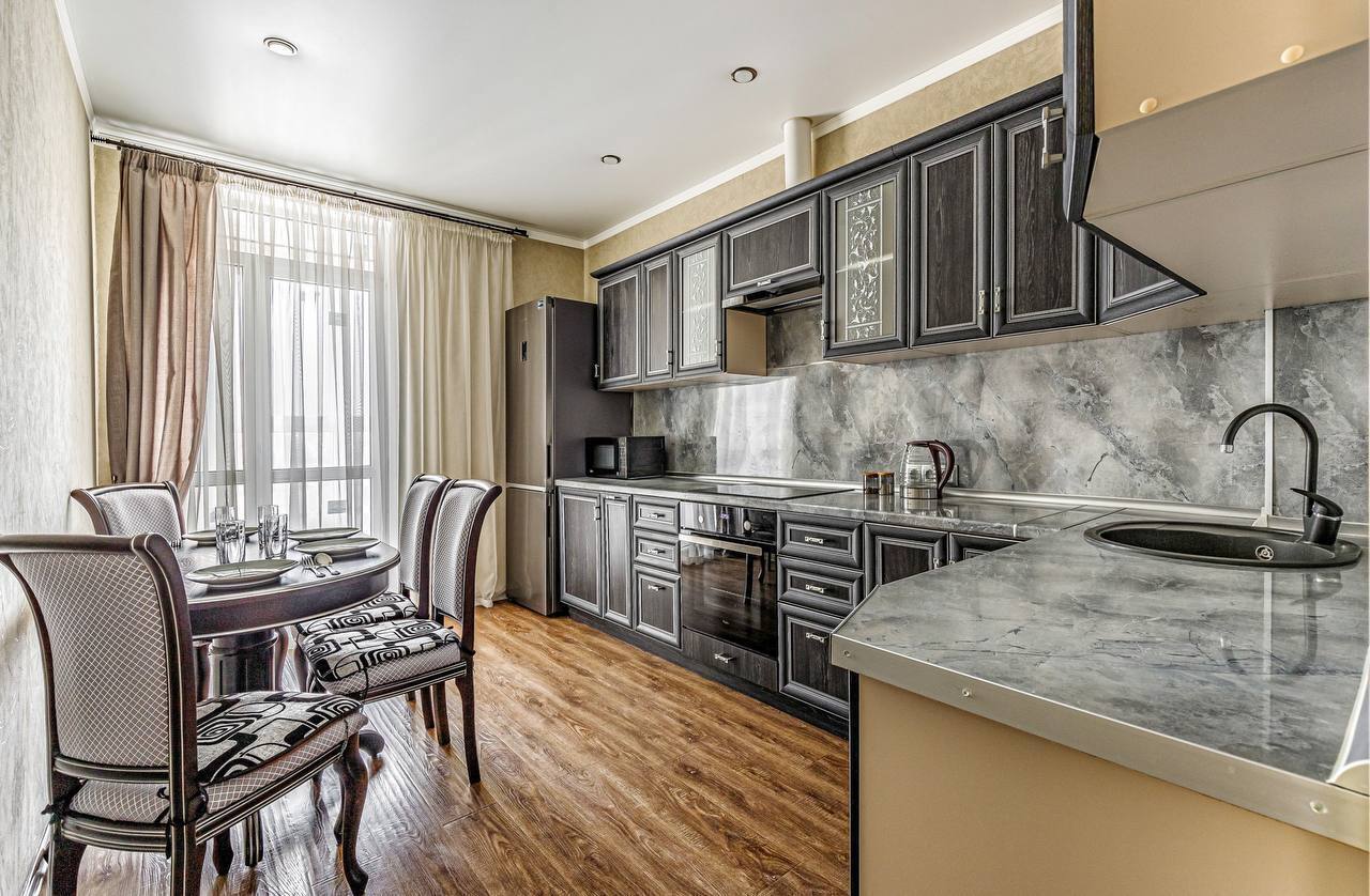 В квартире две раздельные комнаты, большая и просторная кухня. Спальных мест 2+2+2 (две двуспальные кровати и двуспальный диван). В квартире есть все необходимое для проживания, кабельное ТВ и wi-fi, качественное постельное белье 100% хлопок, комплект полотенец, посуда в полной комплектации (включая фужеры), утюг, гладильная доска, фен, тапочки, шампунь. Современная укомплектованная кухня: духовка, микроволновка, посуда.