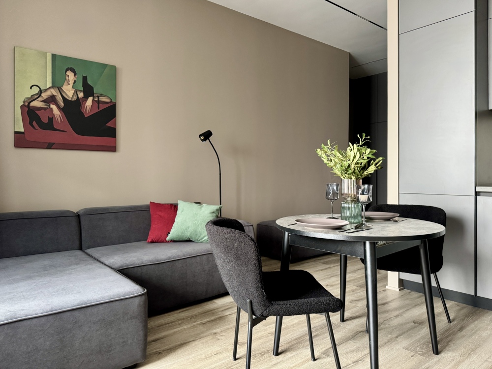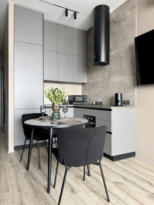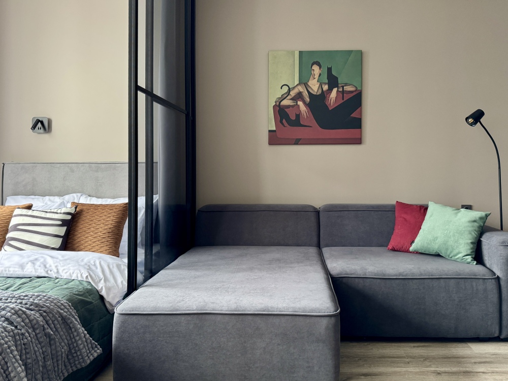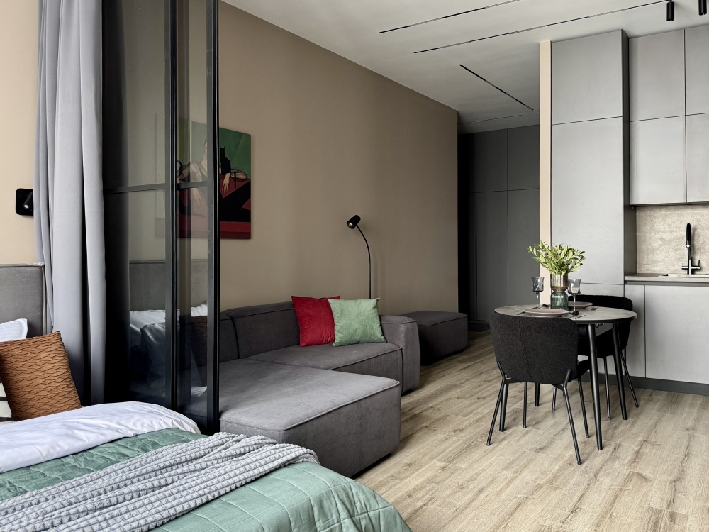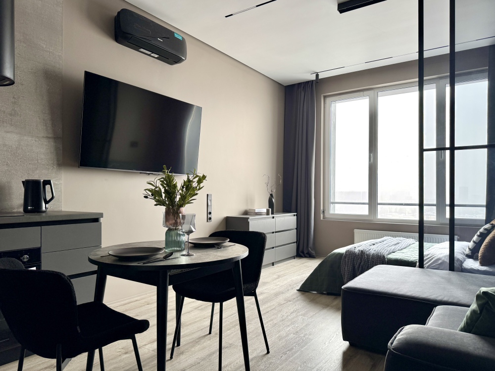 В студии есть всё для комфортного отдыха и проживания: вся необходимая мебель и техника.