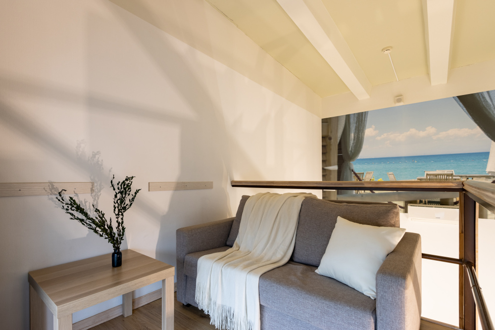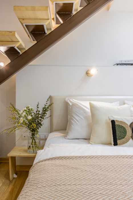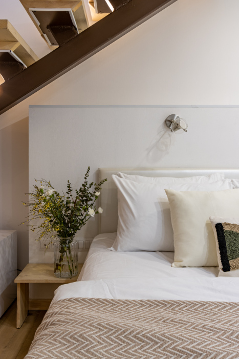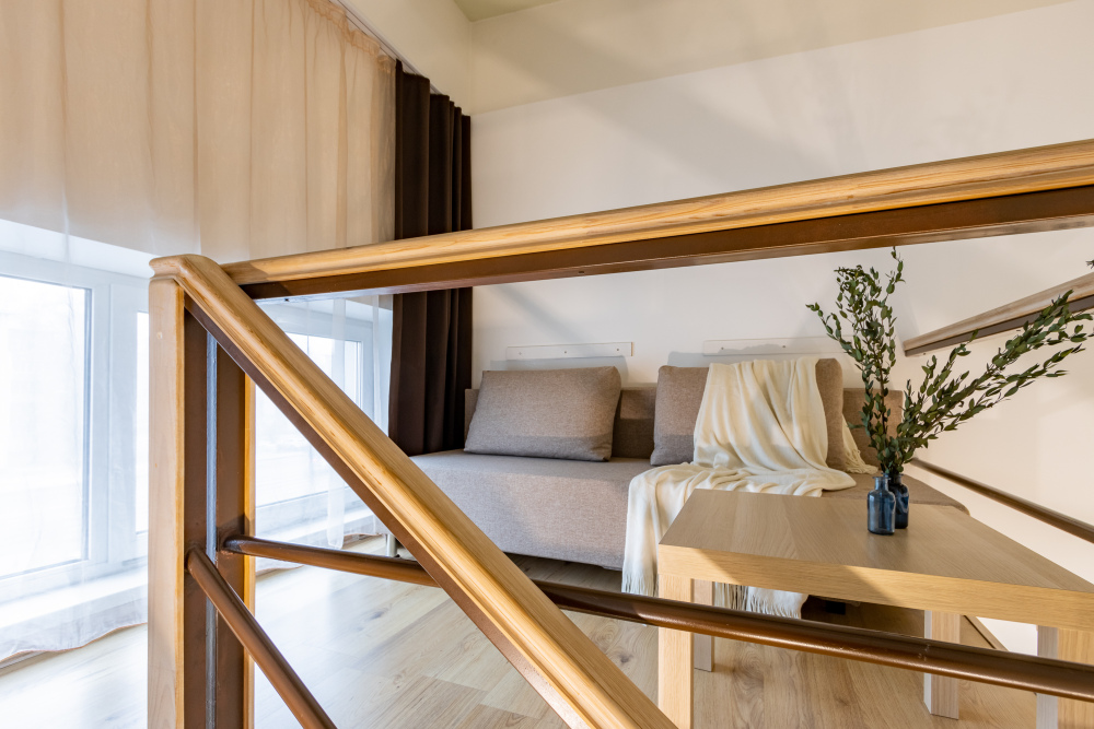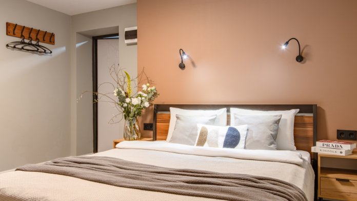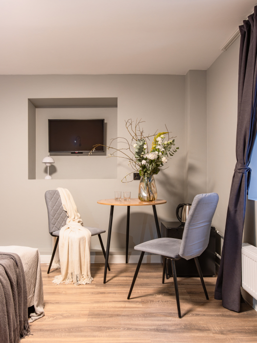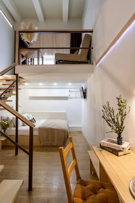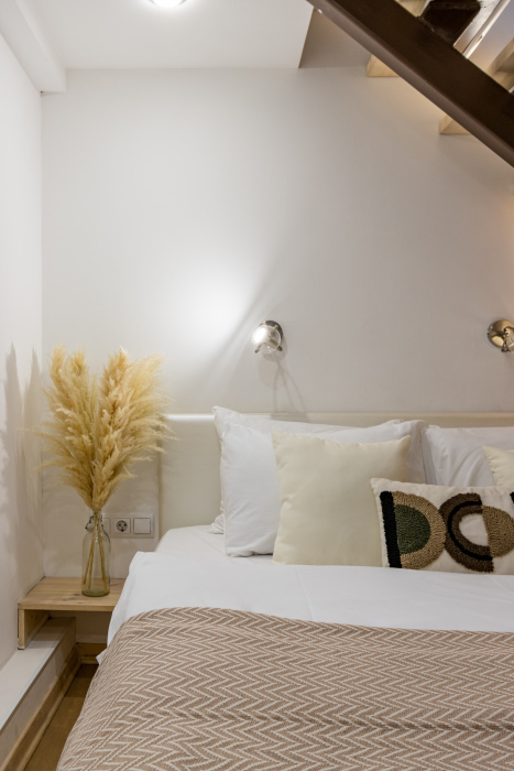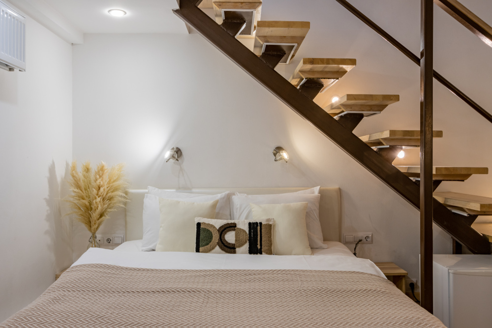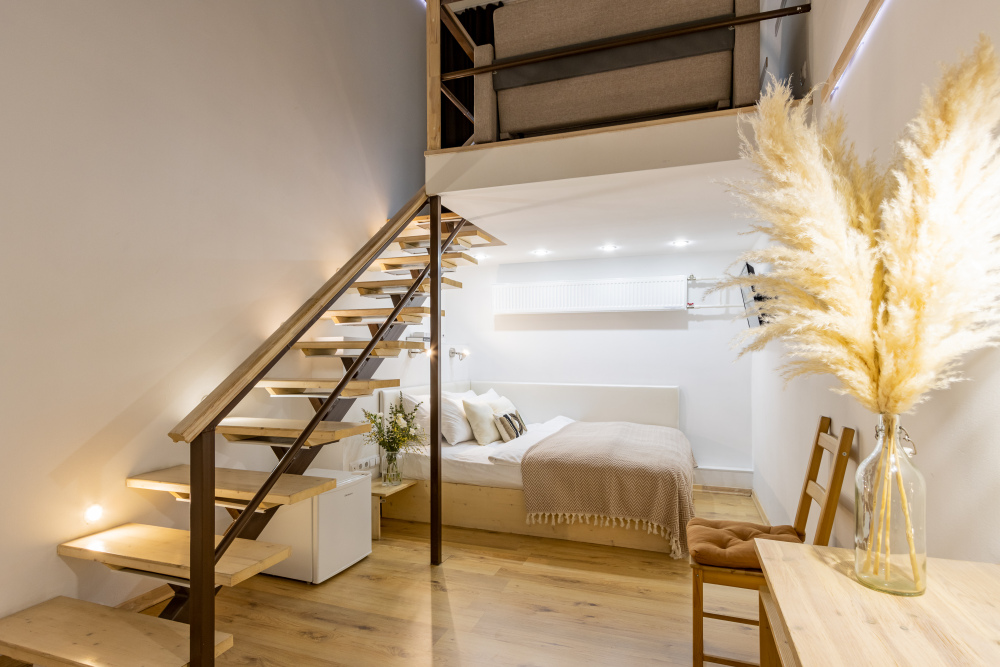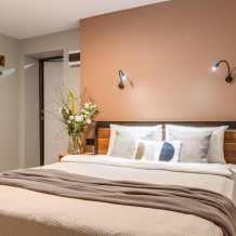 Дуплекс номера отеля комфортабельные и двухэтажные.Номера оборудованы одной большой двухспальной кроватью.Все номера выполнены в соответствии с современными европейскими тенденциями и оформлены в авторском стиле. В каждом номере есть ванная комната. Номера выполнены в спокойных тонах. Площадь составляет 20 - 22 кв.м. Номера располагают рабочим местом со столом и стулом. Дополнительное спальное место, диван на втором уровне.
