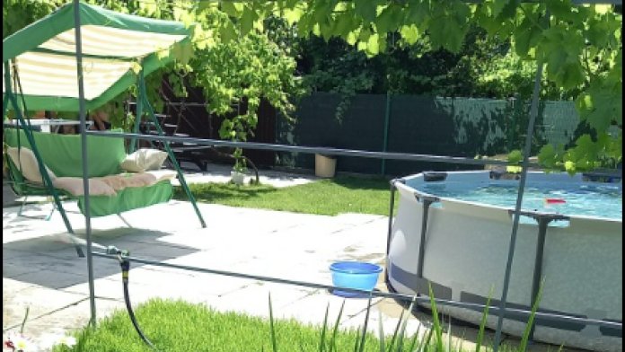 На территории имеется садовая мебель для отдыха на свежем воздухе, зеленый сад и принадлежности для барбекю, сезонный каркасный бассейн, частная автостоянка. В окрестностях можно заняться спортом, отправиться в пешие и велопрогулки. Оборудована лмчная в использовании кухня, где гости могут самостоятельно приготовить или разогреть еду. Имеется бытовая техника, плита с вытяжкой, необходимые принадлежности и посуда. В личном пользовании санузел. Также гости могут приготовить любимые блюда на мангале во дворе. Пообедать возможно в кафе и ресторане поблизости.