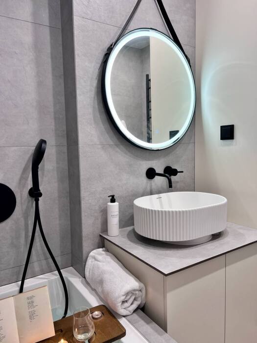 Санузел просторный, с новой и качественной сантехникой. Также подготовила для Вас хлопковые полотенца разного размера, шампунь и гель для душа. Вы сможете воспользоваться стиральной машиной - для нее есть специальный стиральный порошок.