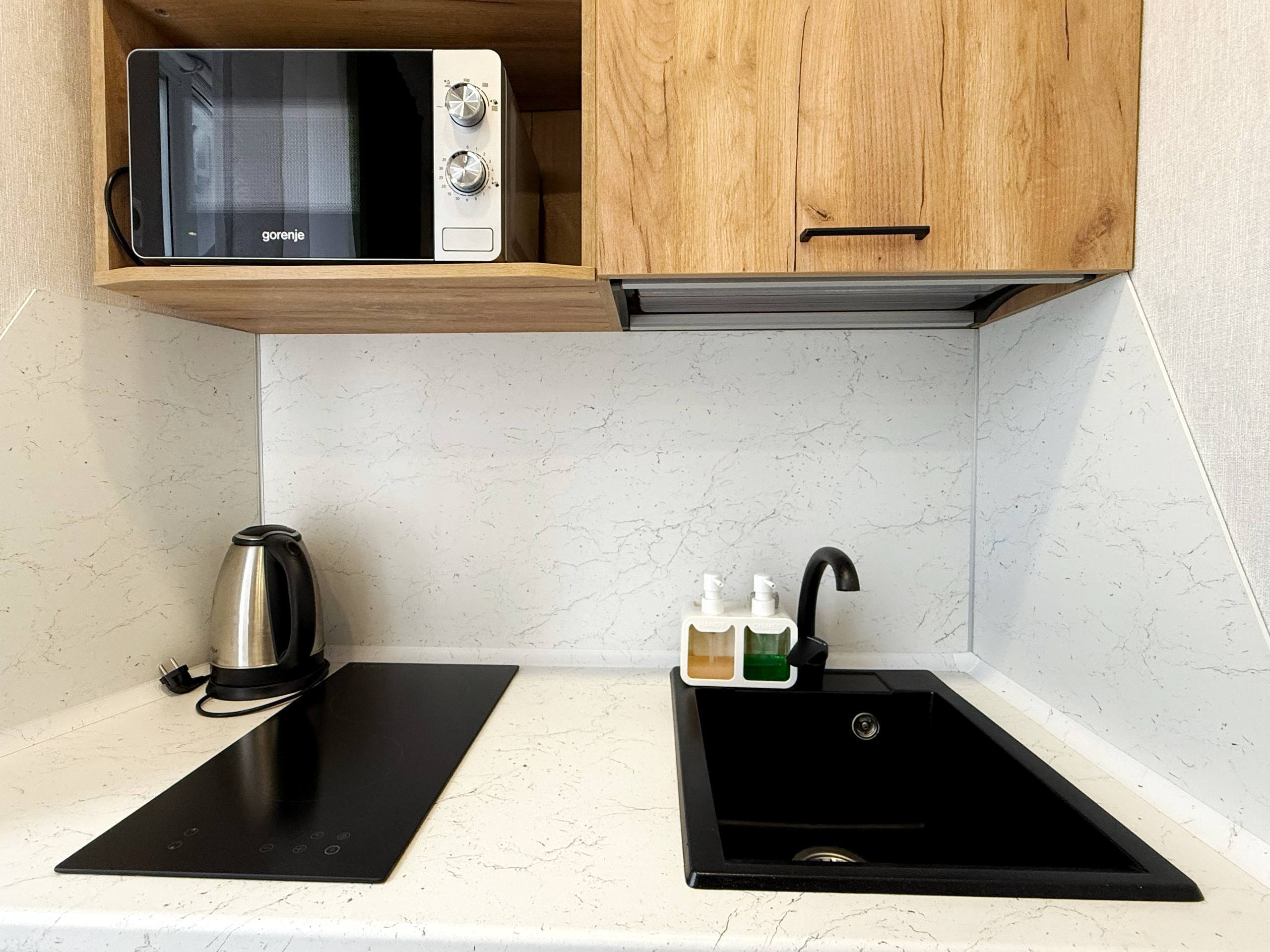 - Уютная кухня, оборудованная: