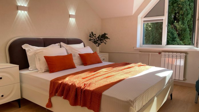 Просторная спальня: Вас ждет большая двуспальная кровать с матрасом 160*200 для крепкого и здорового сна.