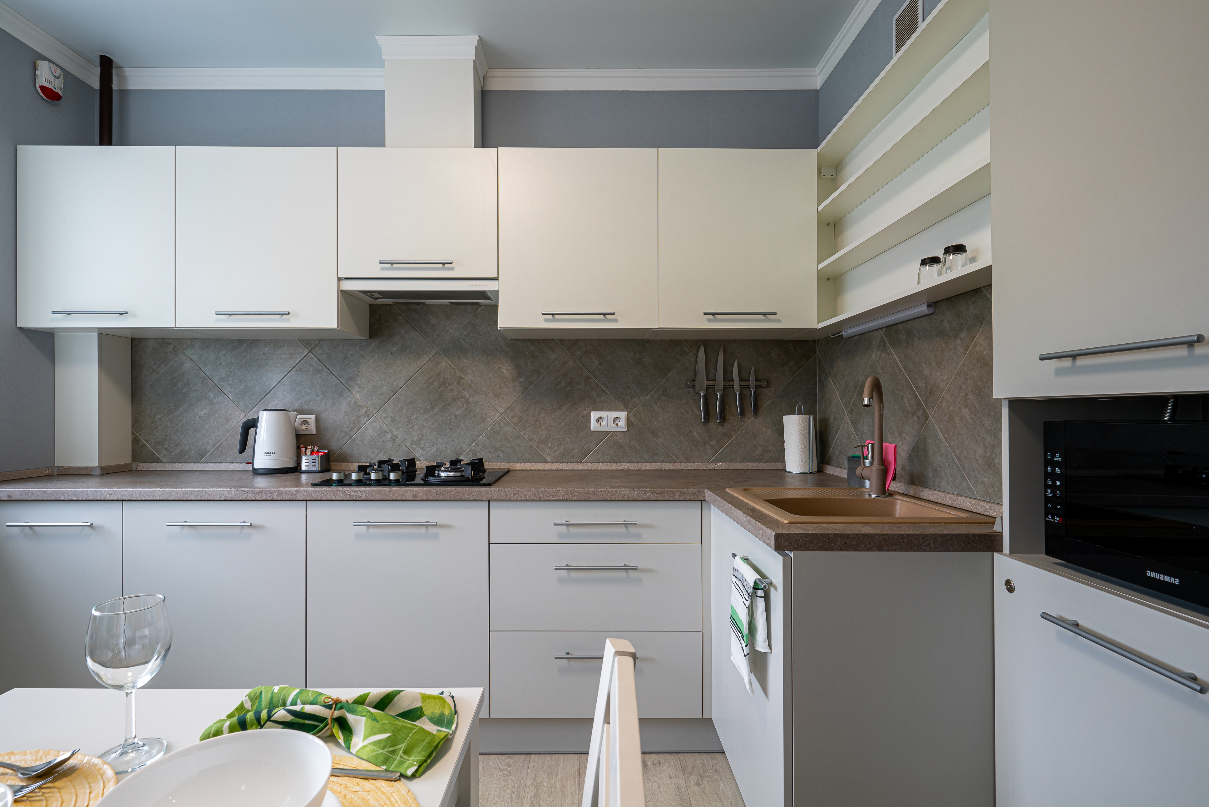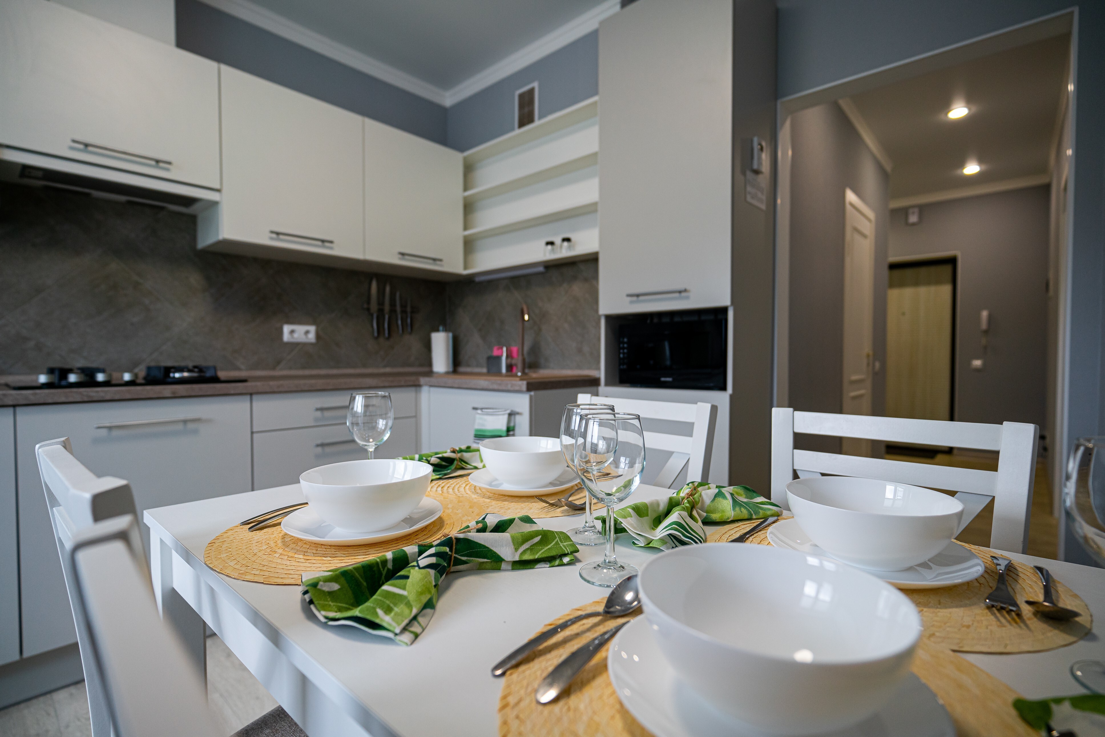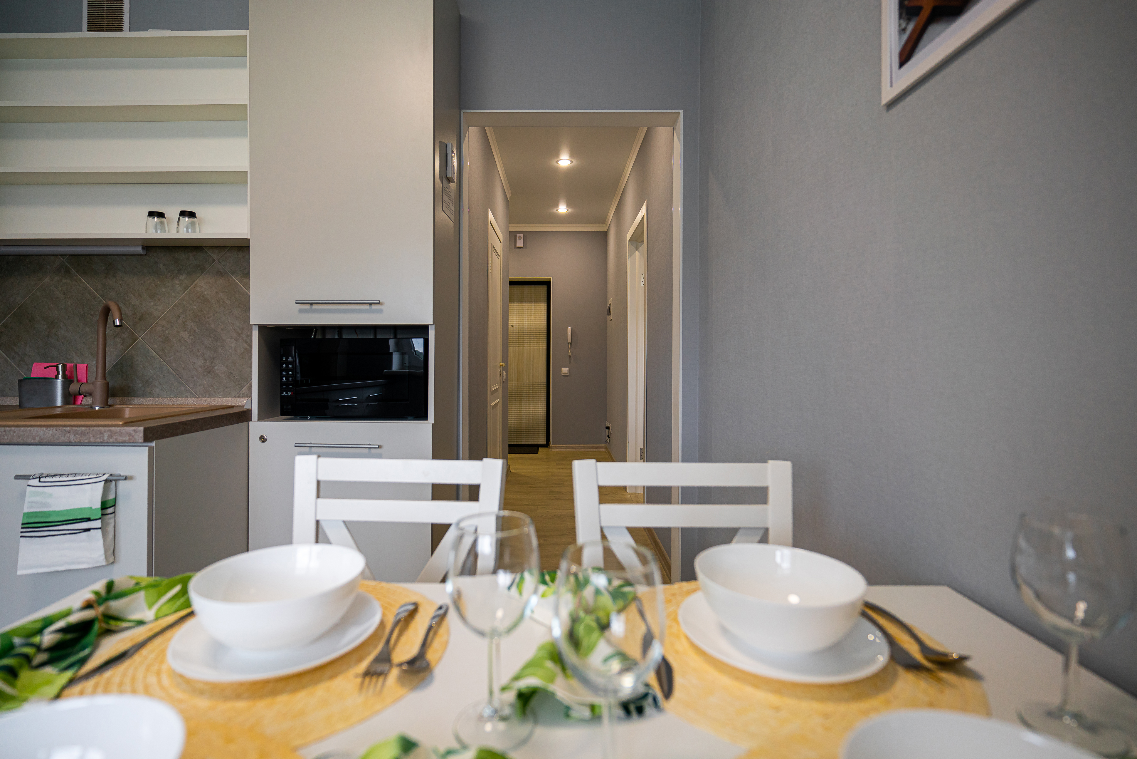 Уютная квартира с красивым дизайном. Элитная новостройка в центре города, рядом находится озеро Тихое с прокатом лодок, где можно неспешно прогуляться.