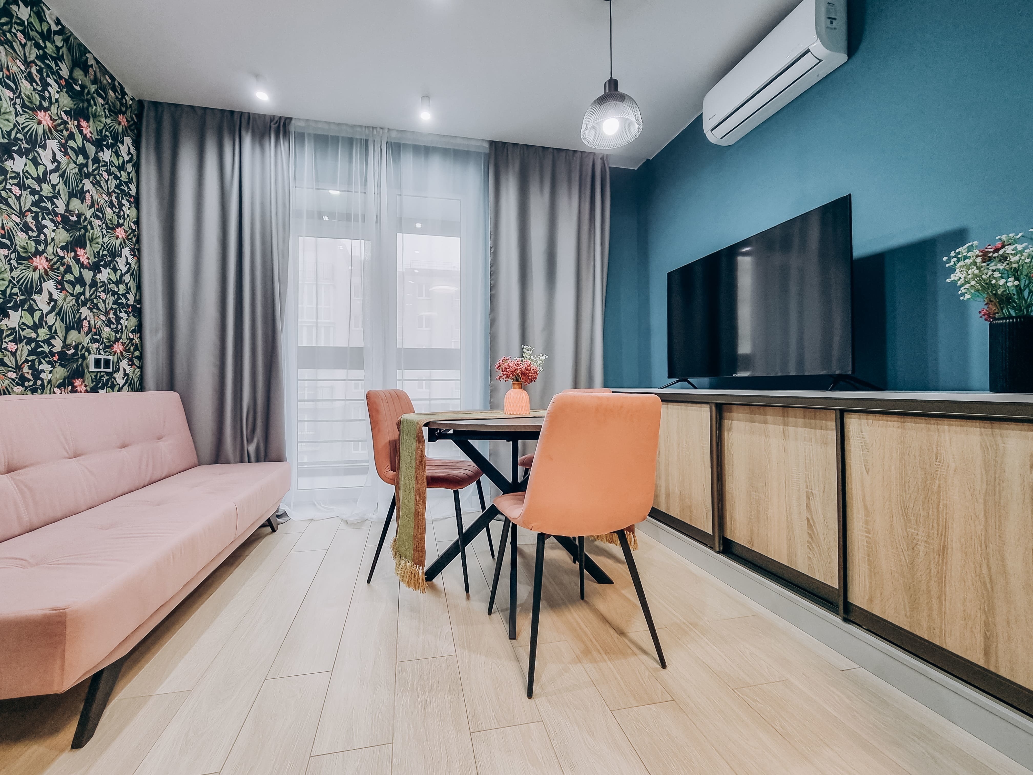 Однокомнатная квартира с дизайнерским ремонтом. Дом комфорт-класса рядом с лесом: лифт, огороженная территория с парковкой и въездными автоматическими воротами. Недалёко от дома есть магазин и кафе. Море, променад для долгих прогулок, велосипедная дорожка, выезд на приморское кольцо, соседние прибрежные города, аэропорт и Калининград доступны в любое время. Легко добраться без пробок по скоростной трассе, в 20 минутах от жилого комплекса - легендарный «Янтарь-холл», культовая площадка для главных культурных событий региона, курортная жизнь круглый год. До моря и пляжа прогулка занимает 15 минут через лесопарк. А до ж/д вокзала, с которого можно легко и быстро уехать в другие прибрежные города, можно дойти за 10 мин. Спокойным и прогулочным шагом.