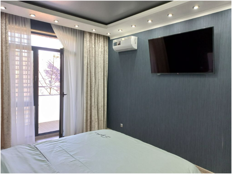 В апартаментах предоставлены: 4 полотенца, 2 комплекта постельного белья, фен, шампунь, гель для душа, мыло для рук, кондиционер, утюг, холодильник, стиральная машина, посудомоечная машина, микроволновая печь, кофемашина, кулер с питьевой водой, Wi-Fi.