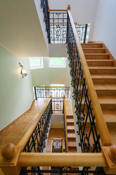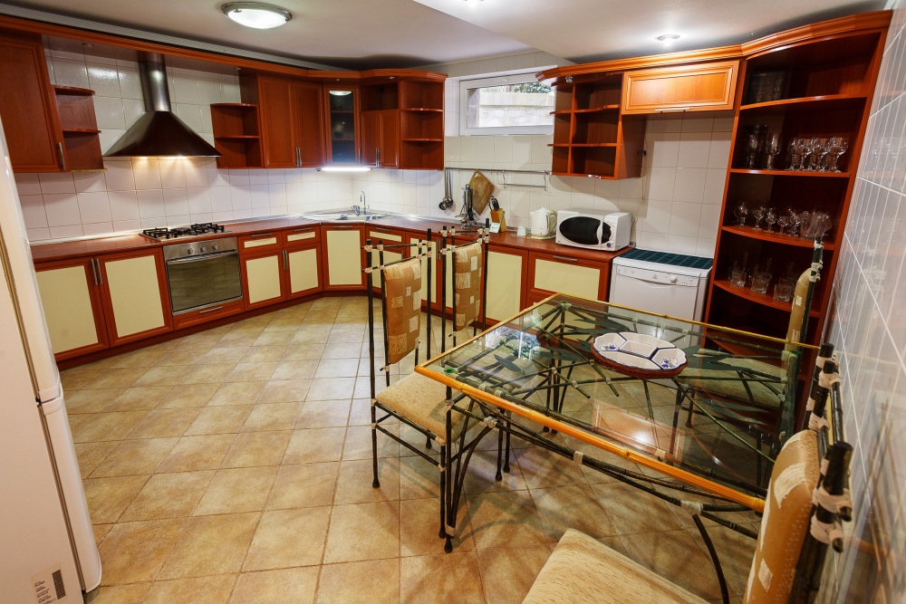 Максимальное количество гостей на вилле - 12 человек, дополнительно в залах расположены 2-х местные раскладные диваны. Вилла состоит из 3-х жилых этажей, каждый из которых располагает 2 спальнями с собственными санузлами, гостиной с плоским телевизором и раскладным диваном.