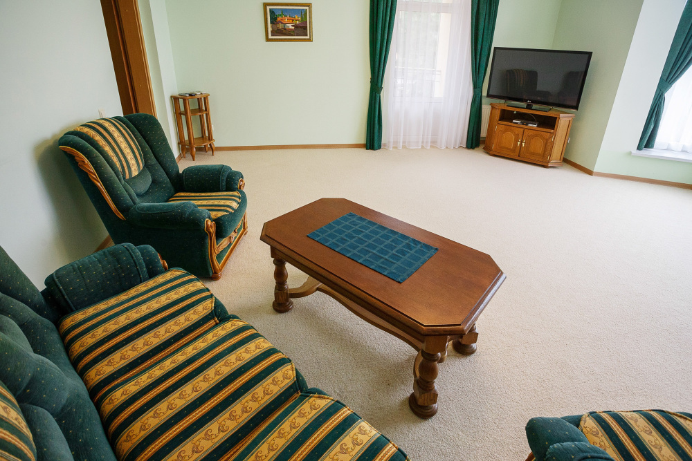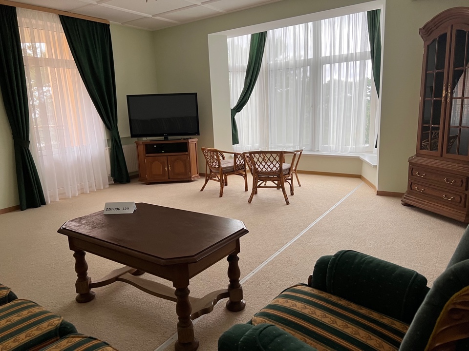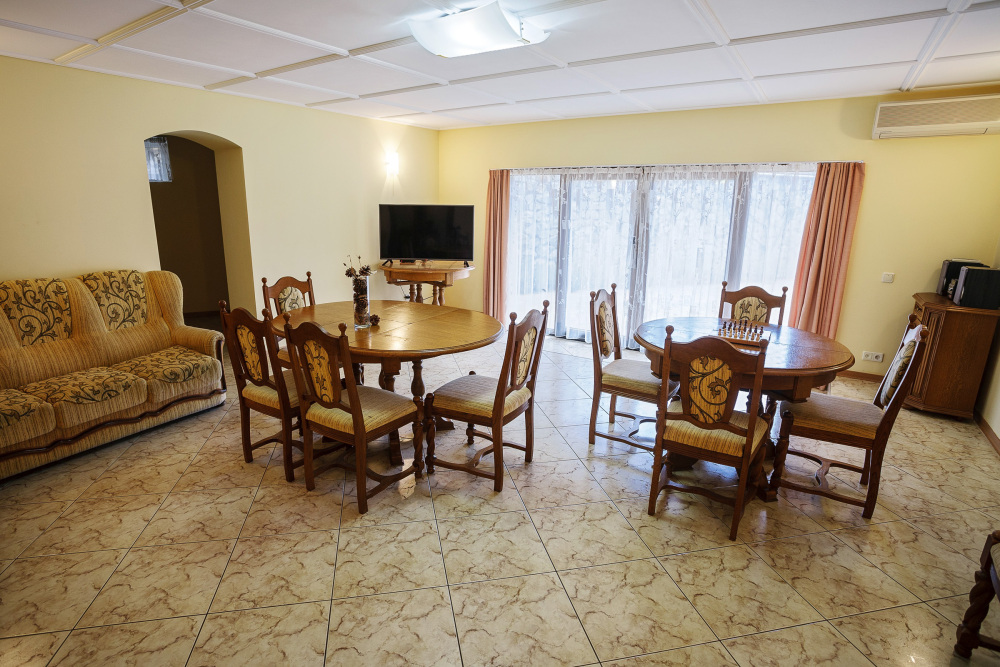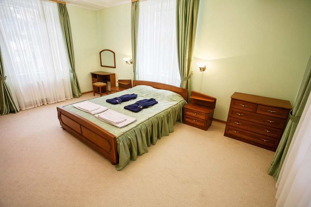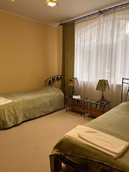• 3 двуспальных кровати, 6 односпальных кроватей, 3 дивана-кровати, детская кроватка (по запросу)