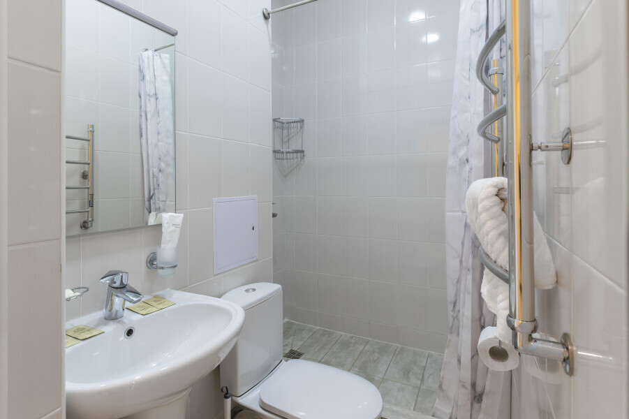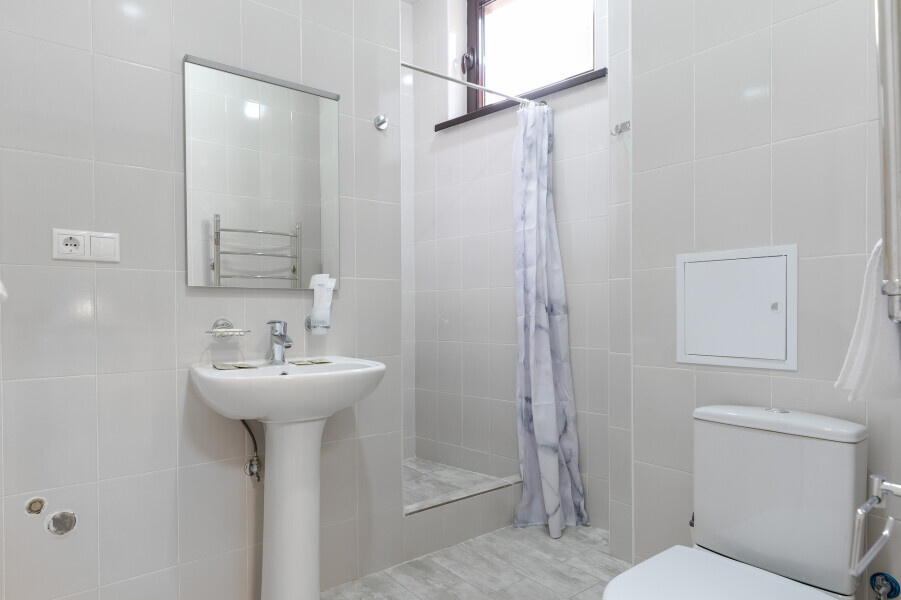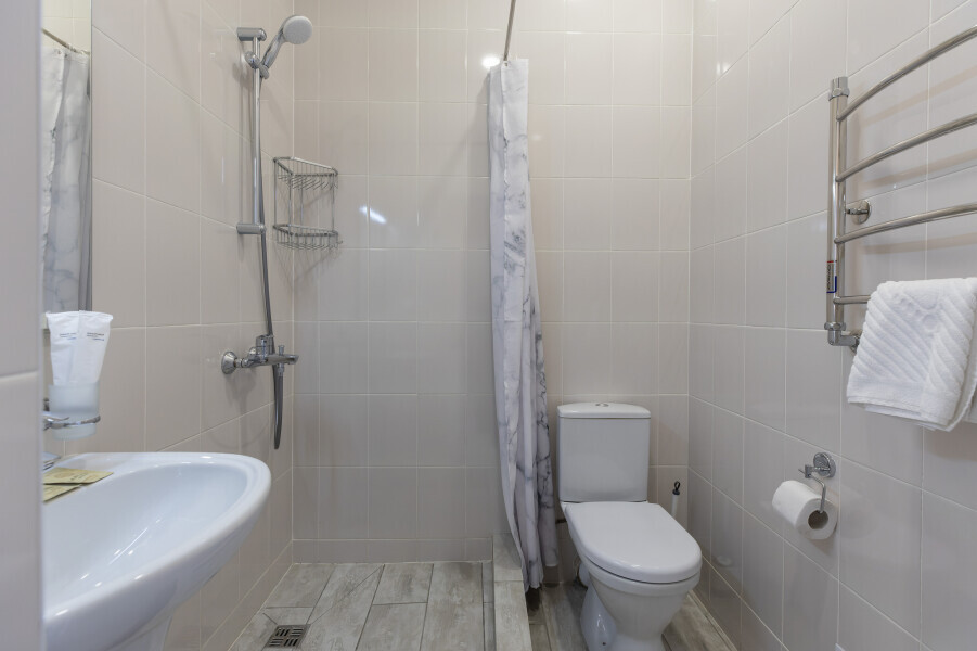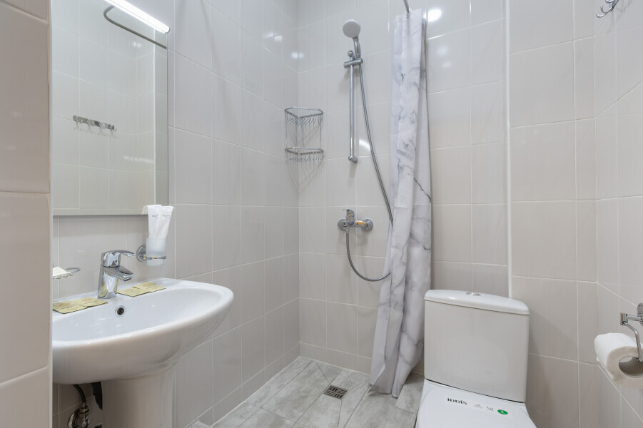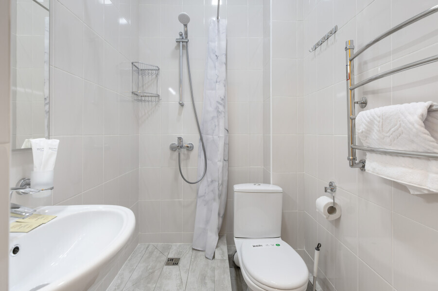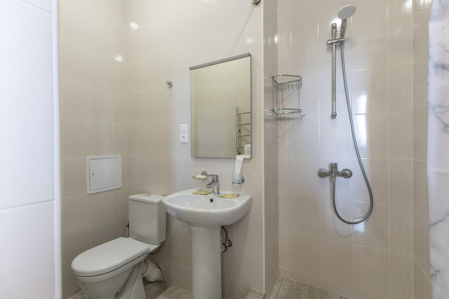 Уютный номер оснащен 1,5-спальной кроватью, которая обеспечит Вам отличный сон и отдых после активного дня. А кондиционер, холодильник, ЖК телевизор и собственный санузел с душем обеспечат Ваше удобство.
