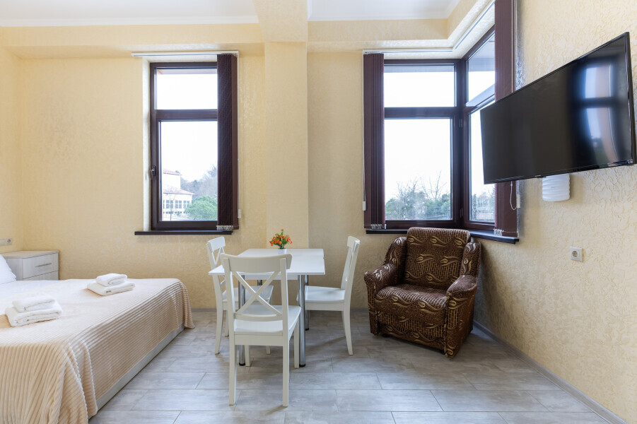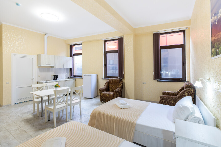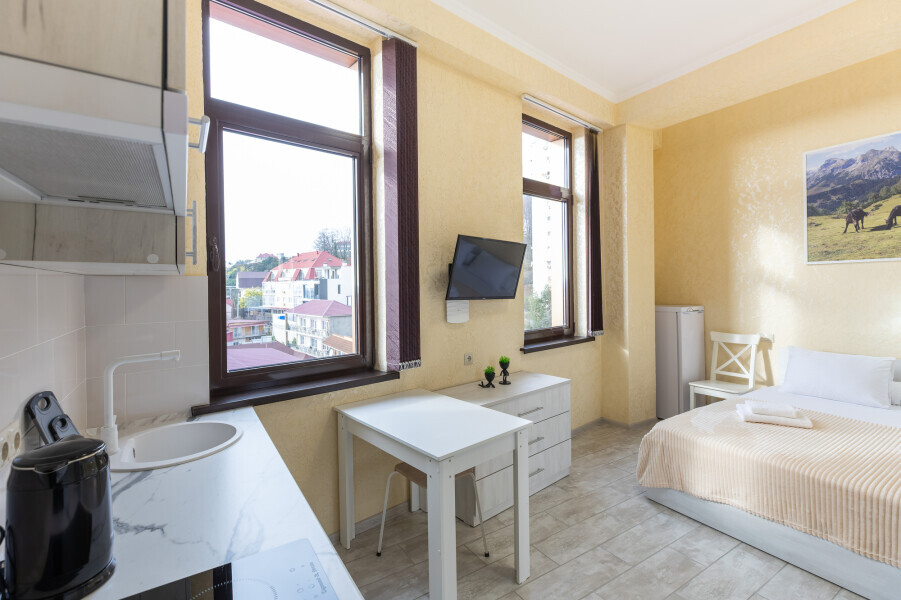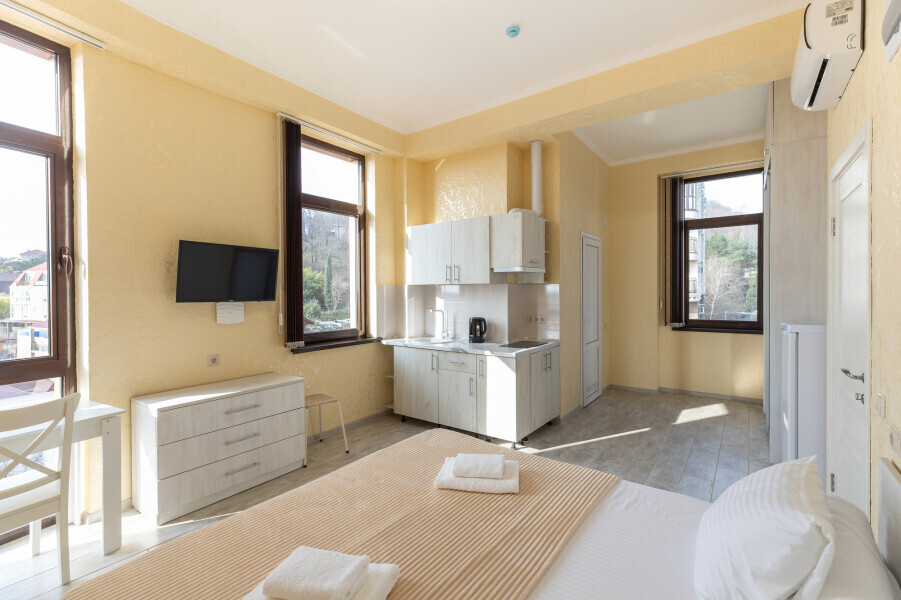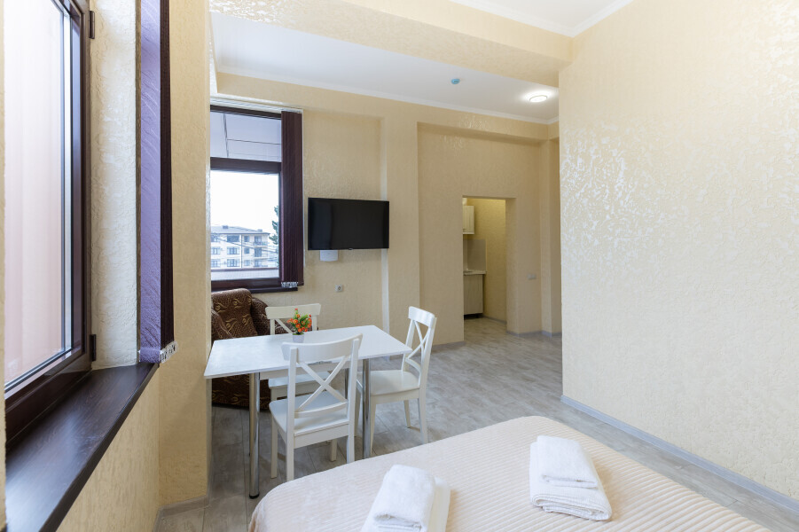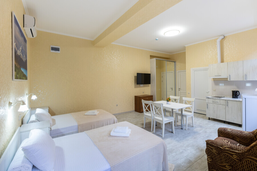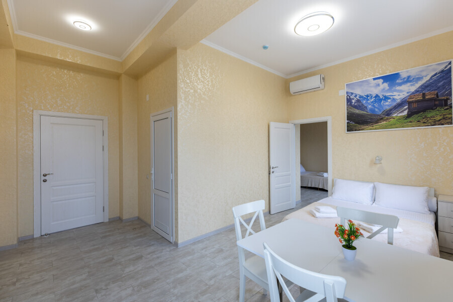 Это гармоничное сочетание уюта, современности и удобства, которое делает проживание здесь незабываемым и приятным. Для всех, кто предпочитает апартаменты, уединение и комфорт, этот отель станет идеальным выбором во время посещения Адлера, Красной Поляны и окрестностей.
