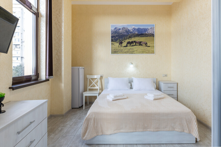 Комфортный номер наполнен светом и оснащен двуспальной кроватью, которая обеспечит Вам отличный сон и отдых после активного дня. А кондиционер, холодильник, ЖК телевизор и собственный санузел с душем обеспечат Ваше удобство.