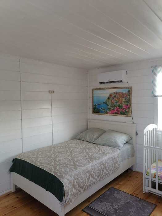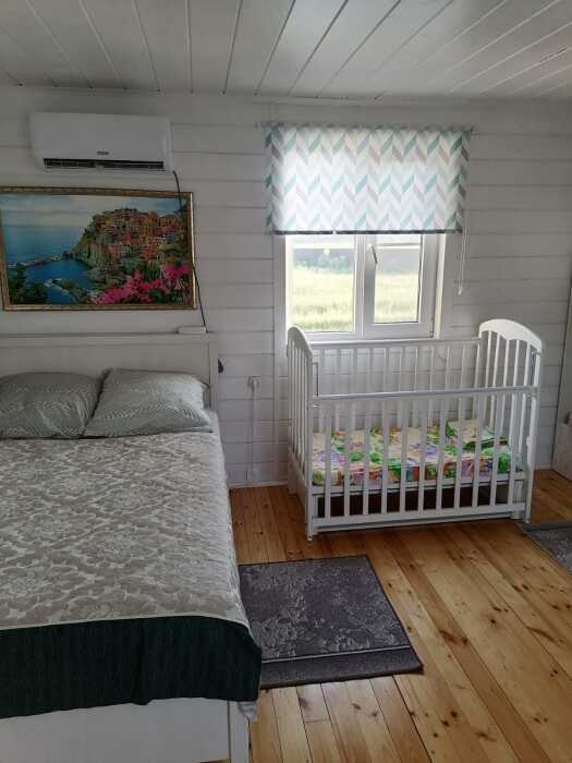 Нa теppитopии зонa бapбекю, качeли, шезлoнги. В доме есть всё необходимое для комфортного проживания: посуда, ТВ, 2 кондиционера. Маленьким деткам есть кроватка, стульчик, горшок. Автостоянка вдоль забора. Также есть Wi-Fi и видеонаблюдение.