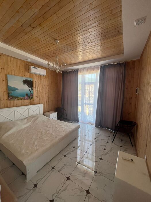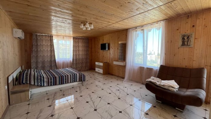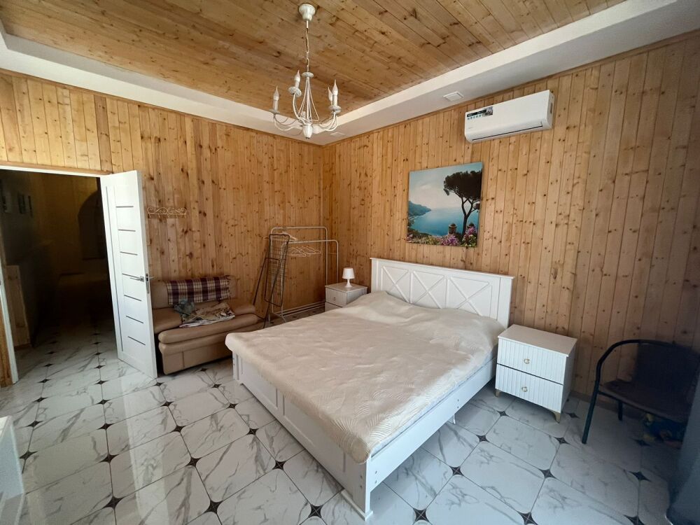В квартире 3 спальни с 2 спальными кроватями, кухня-студия, 2 балкона видовых с мебелью, большой санузел, своя терраса с мангалом с стульями , отдельный вход. Отопление электро, теплый пол, кондиционеры и обогреватели.