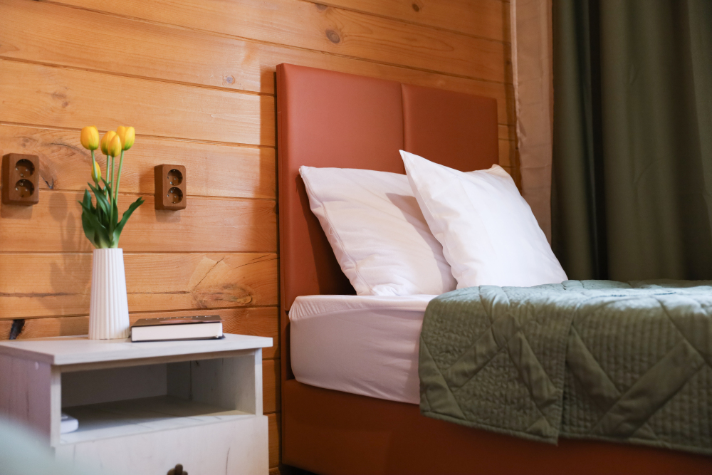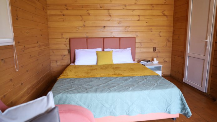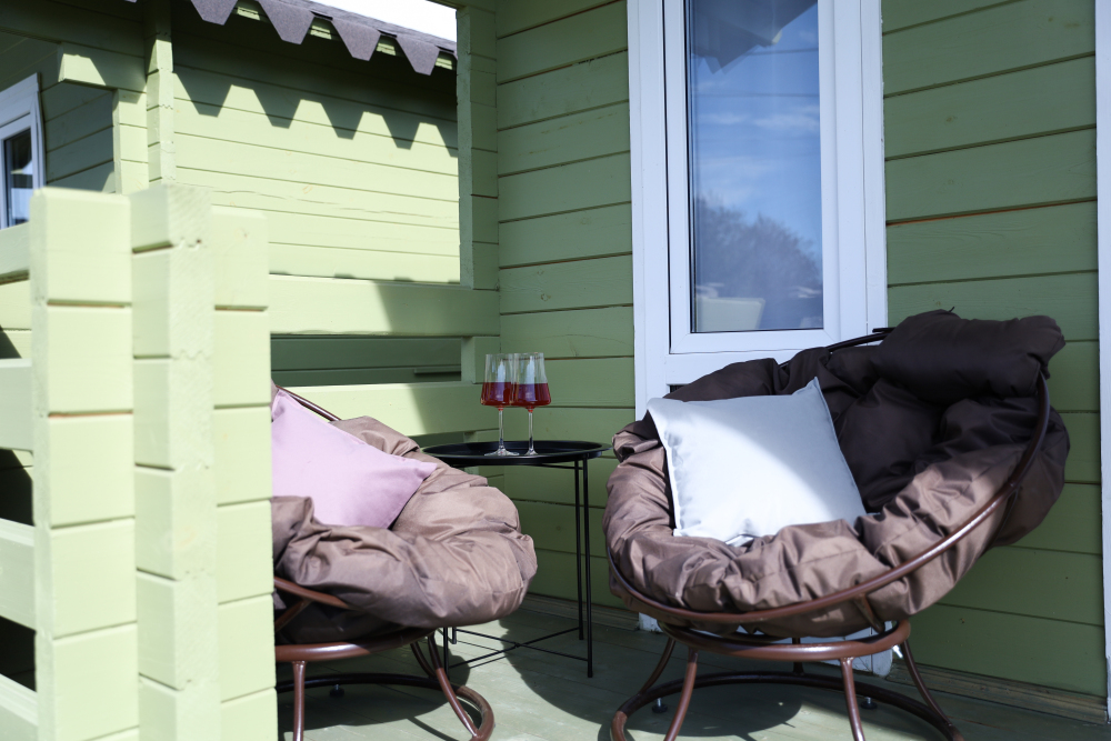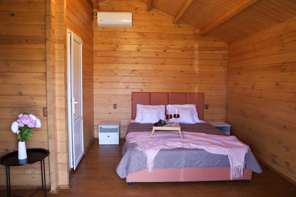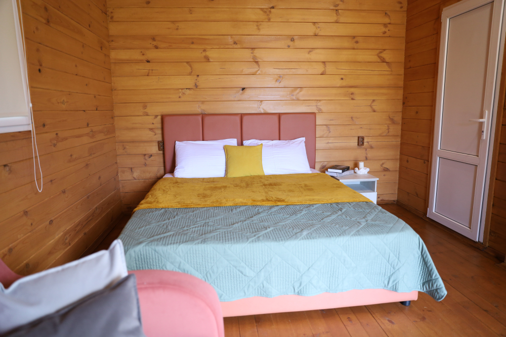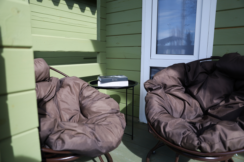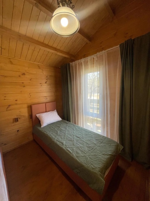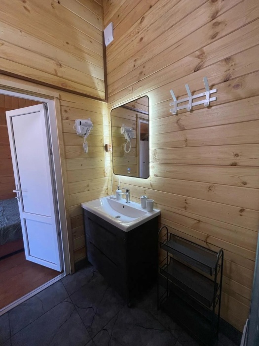 Для наших гостей мы предлагаем коттеджные двухкомнатные и однокомнатные домики, полностью оборудованные для комфортного проживания. В каждом домике есть фен, холодильник, гладильные принадлежности. В домике есть ТВ, WI-FI, также имеется кондиционер и просторная ванная комната. У каждого домика есть своя веранда.