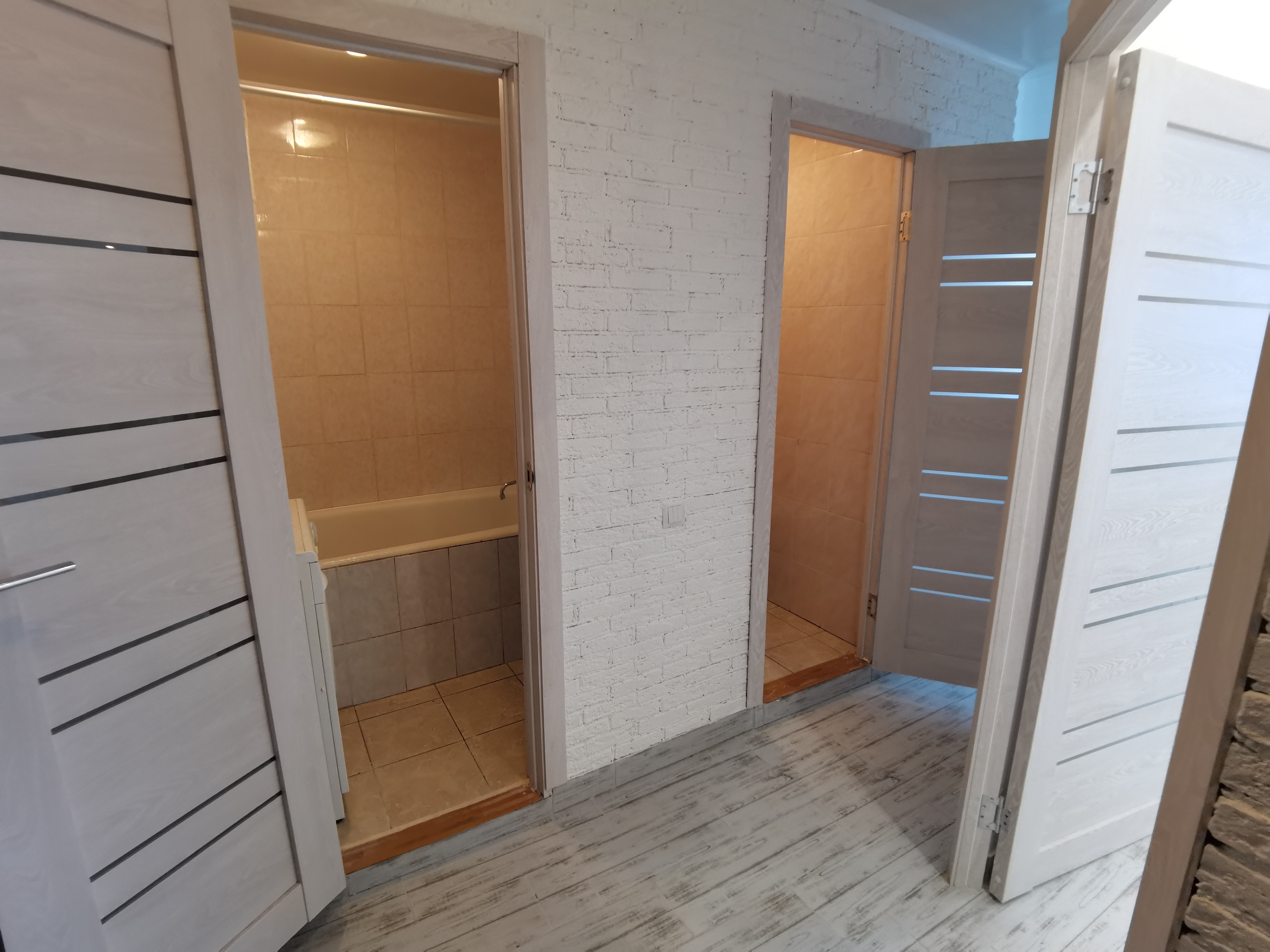 Временно отсутствует кухонный гарнитур и мойка на кухне.
