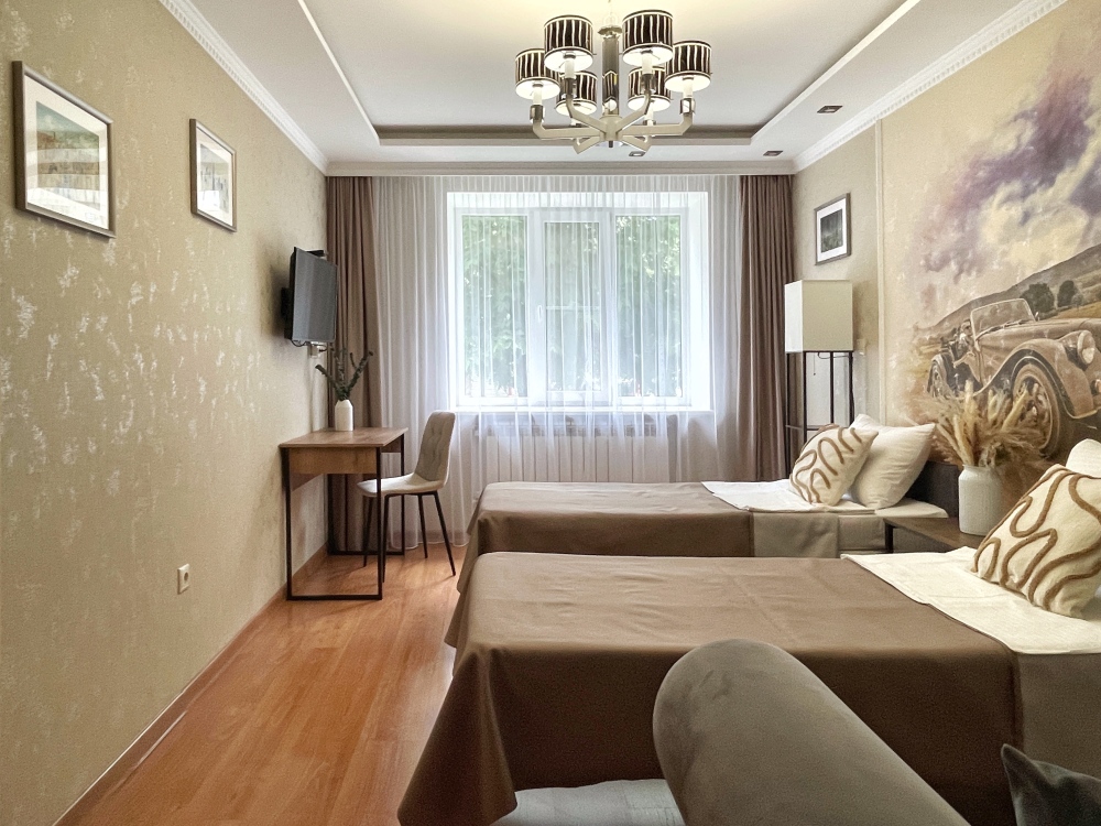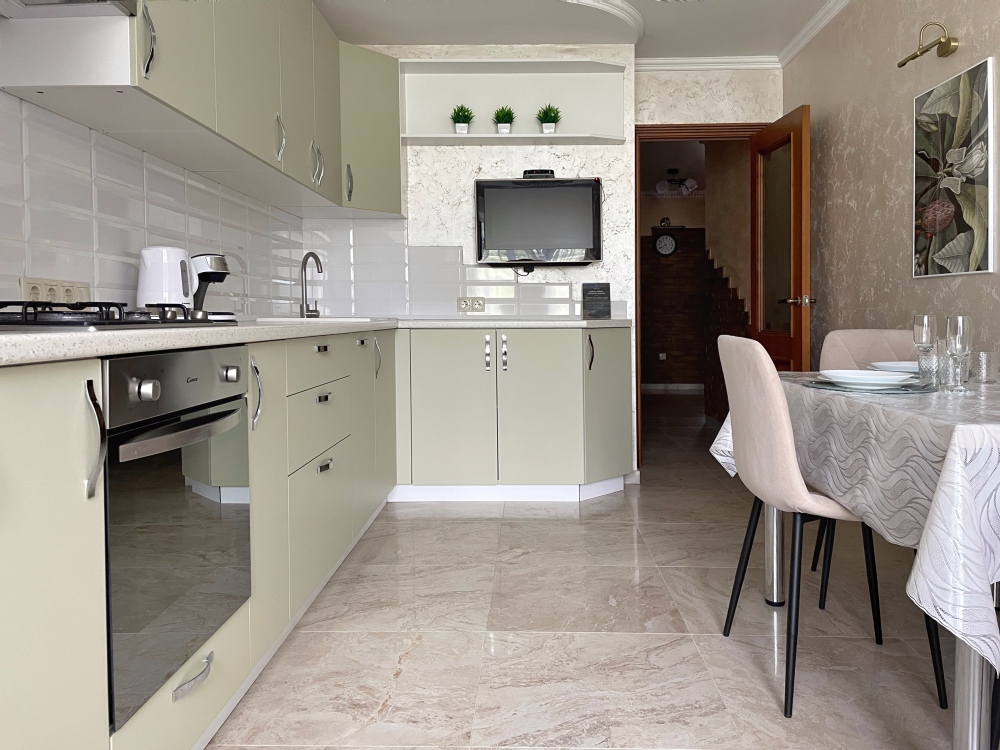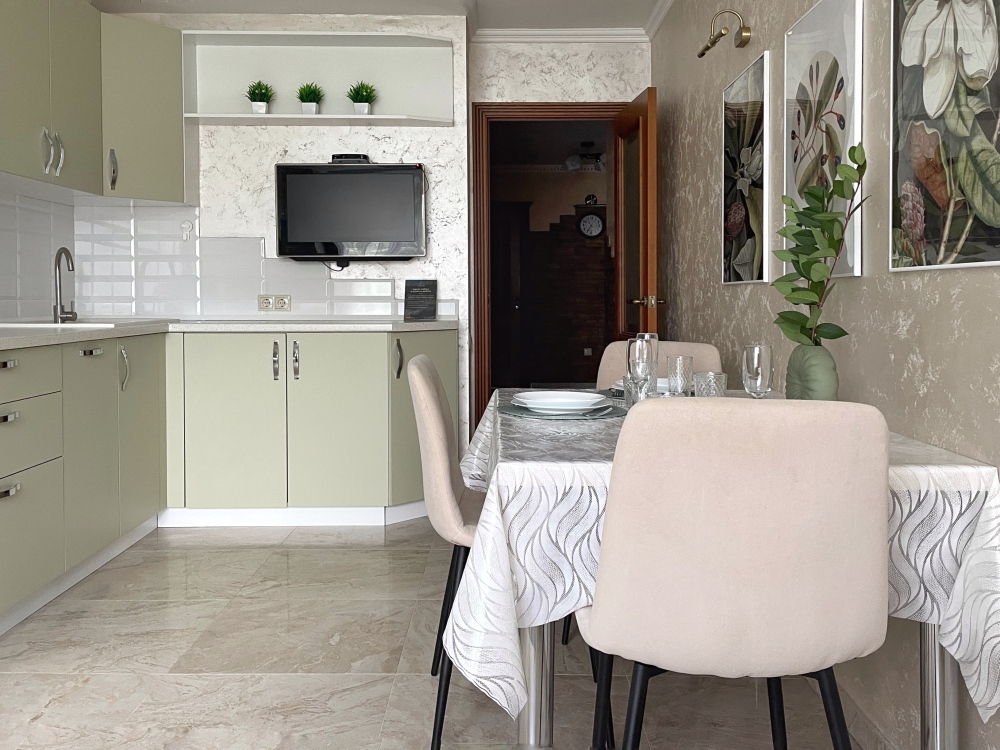Просторная квартира находится в новом микрорайоне с развитой инфраструктурой. В шаговой доступности от питьевой галереи и грязелечебницы имени Семашко. В пешей доступности расположены санатории Россия, Калинина, Казахстан, Украина, Металлург, Анджиевского, Сеченова и др. Доступные парковочные места с видеонаблюдением есть всегда. Вблизи остановка общественного транспорта.