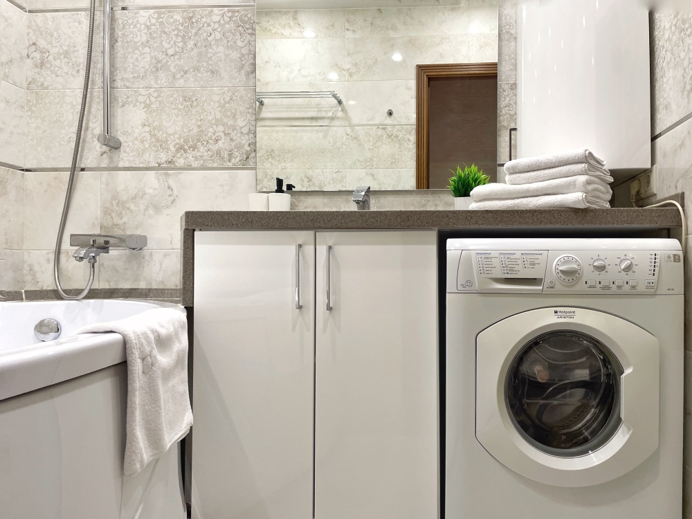 Ванная комната: ванная, стиральная машина. Бесплатно предоставляется комплект полотенец для каждого гостя, душевые наборы, фен. Вся бытовая химия.