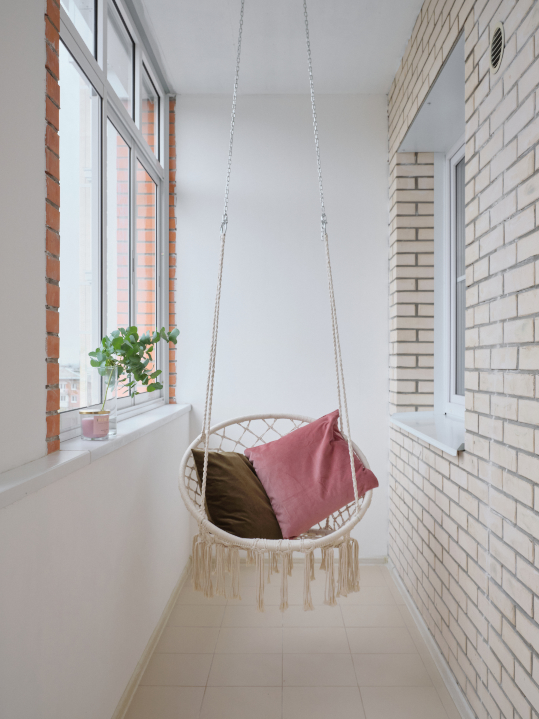 балкон с плетеной качелей.