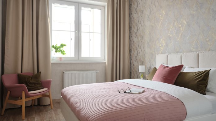 два раздельных спальных места для 4-ых гостей: Удобная кровать 160×200 и диван 140×200;
